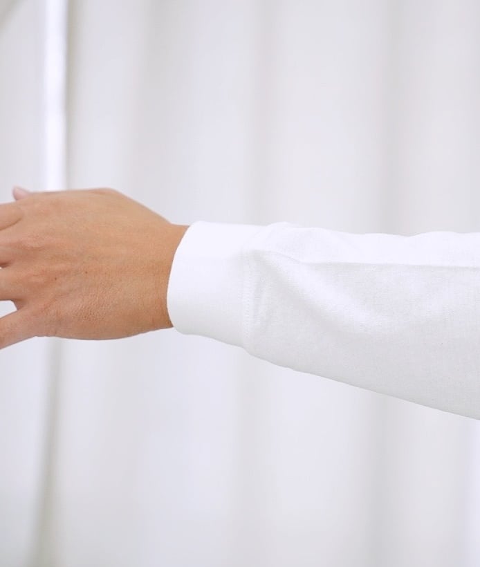 ゆったりとした身幅に大きめのアームホールがオーバーサイズなシルエット。