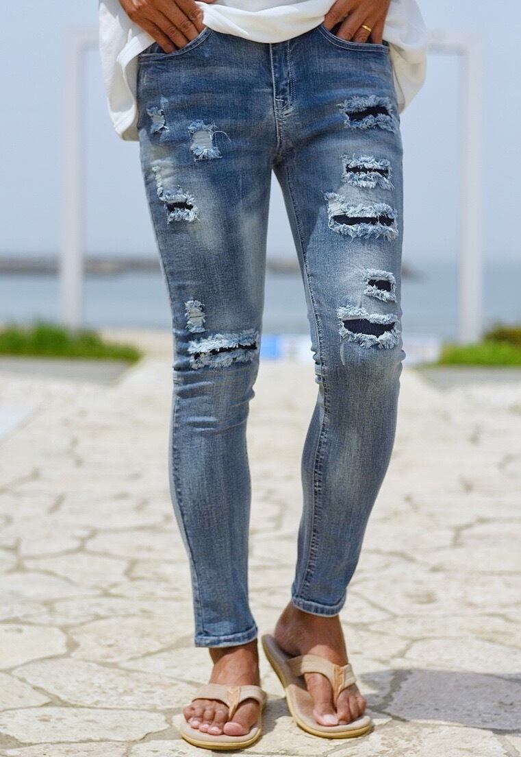 デニム スキニー ダメージ パンツ メンズ サーフ SURF ファッション