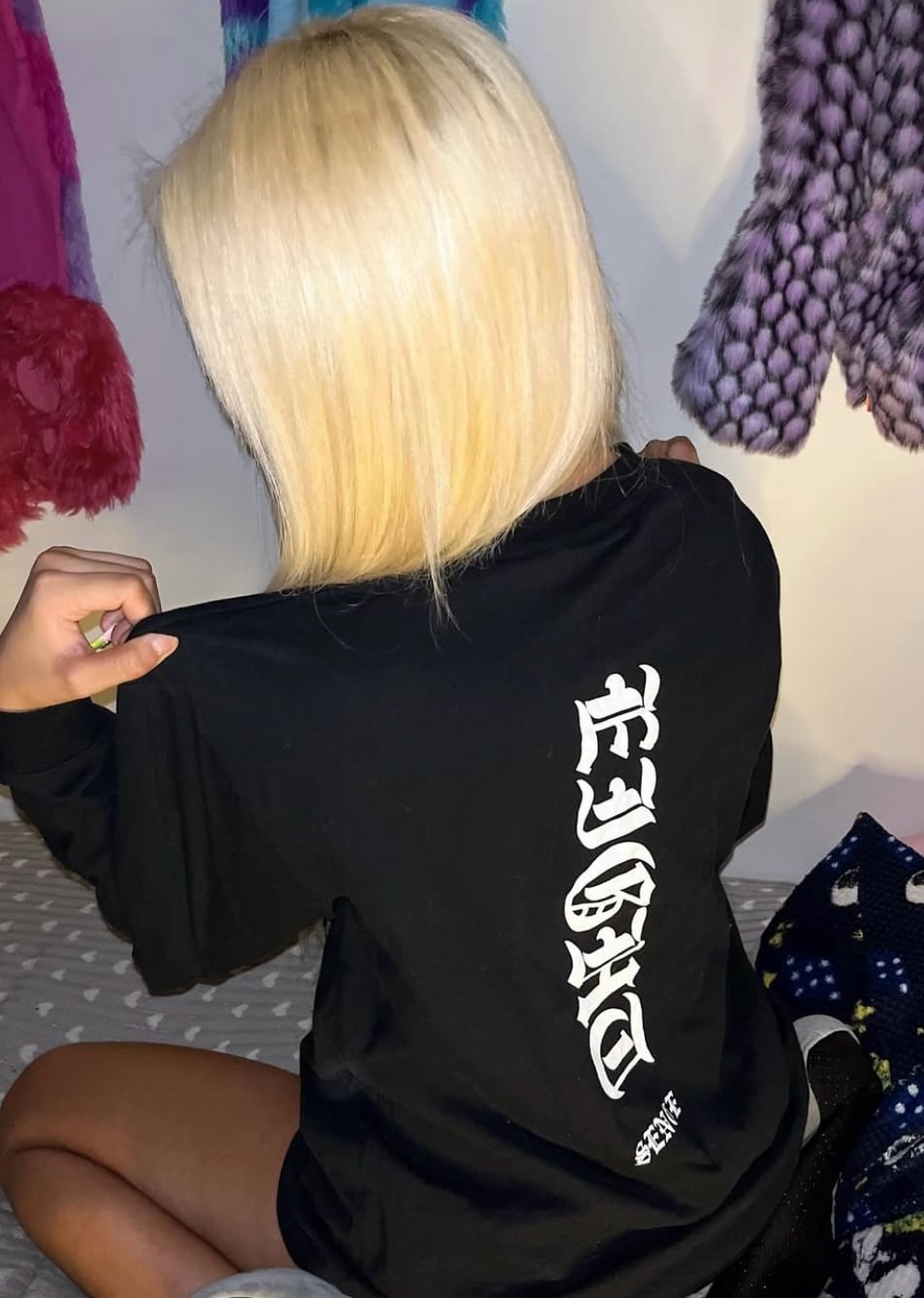 ブラックレターフォントのフロントとバックのプリント。