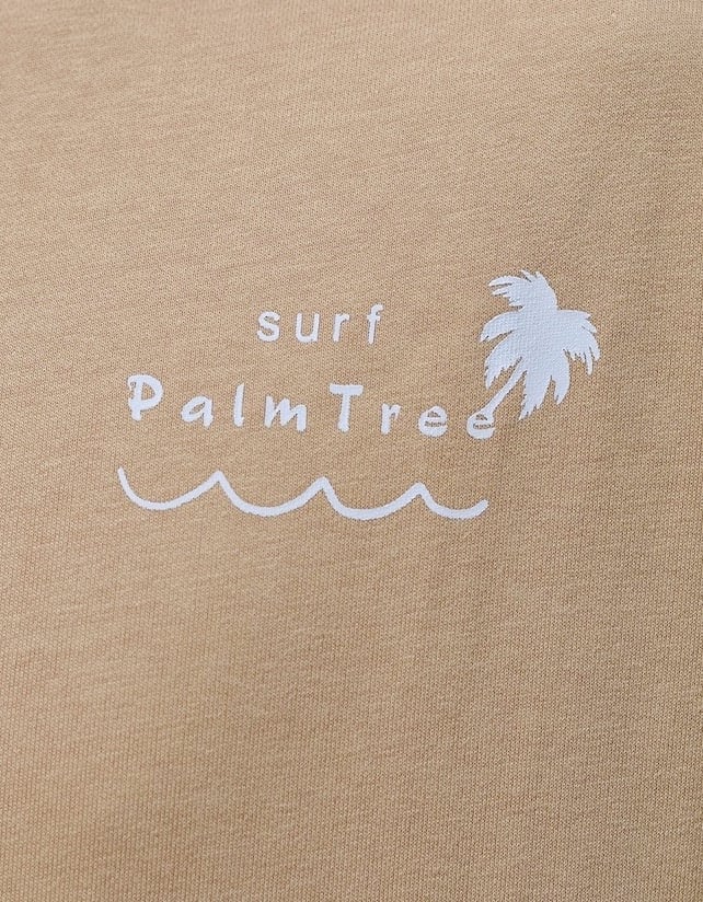 バックスタイルは、存在感のある大きなパームツリーのプリントを配置しフロントはシンプルながら左の胸元にロゴをしまい込むプリントを施しユーモアあふれる仕上がりです。