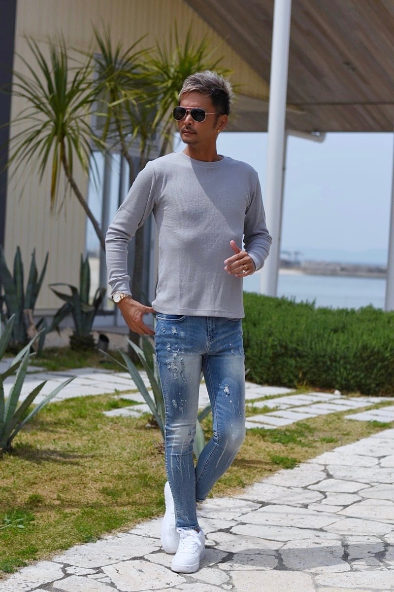 2025 定番 人気 ☆ サーマル 長袖 Tシャツ メンズ ロンT 無地 ワッフル シンプル サーフ SURF インナー 大人 カジュアル スマート コーデ 海 ビーチ 海外 リゾート ファッション