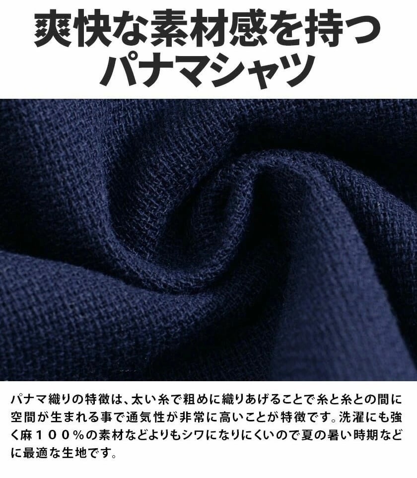 肌との接触を少なくした独特な肌触りのパナマ生地を採用しさらりとした快適な着心地を実現しました。