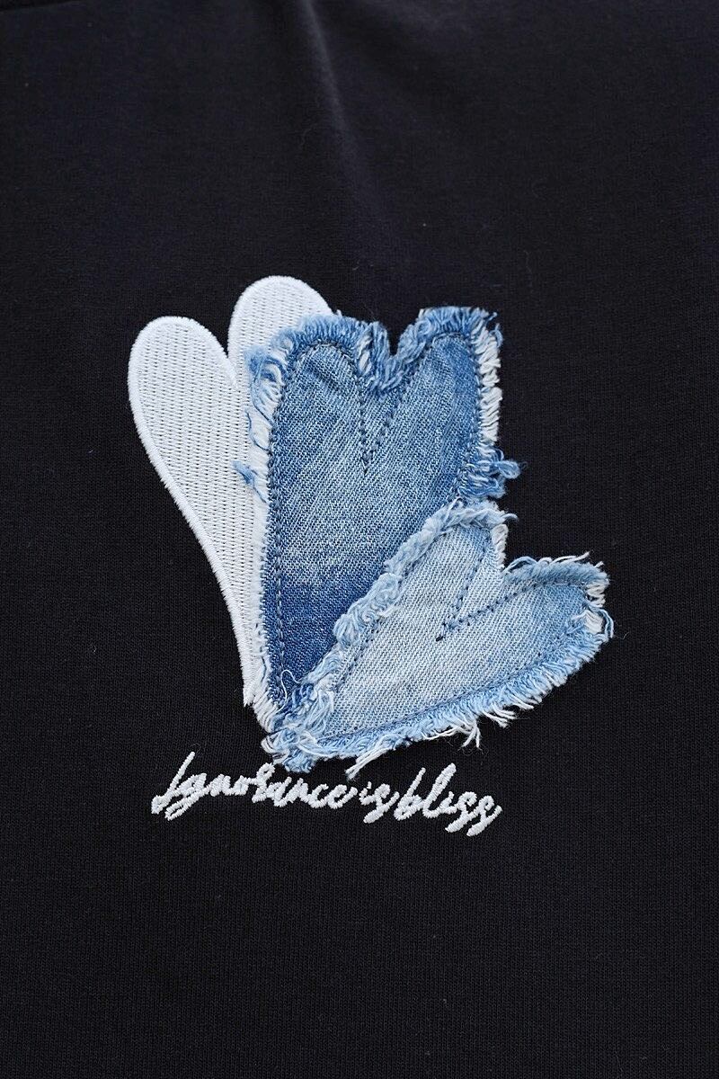 [ ハート デニム 刺繍 ロゴ Tシャツ ]