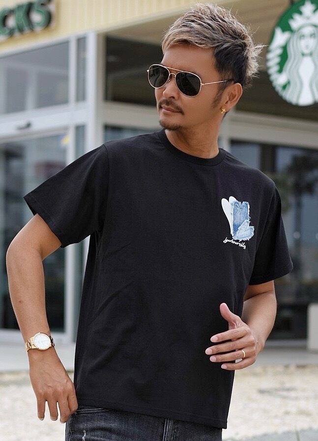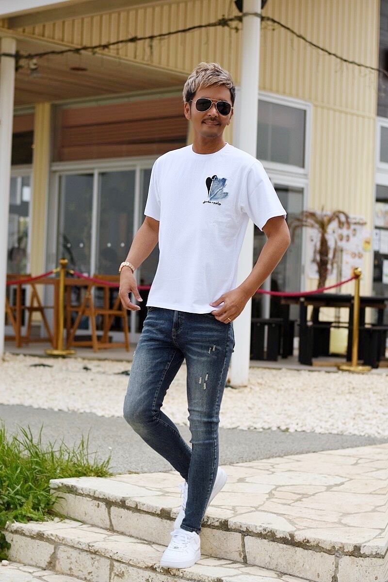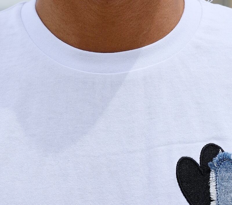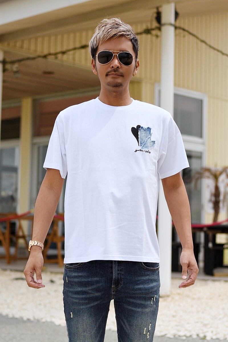 [ ハート デニム 刺繍 ロゴ Tシャツ ]