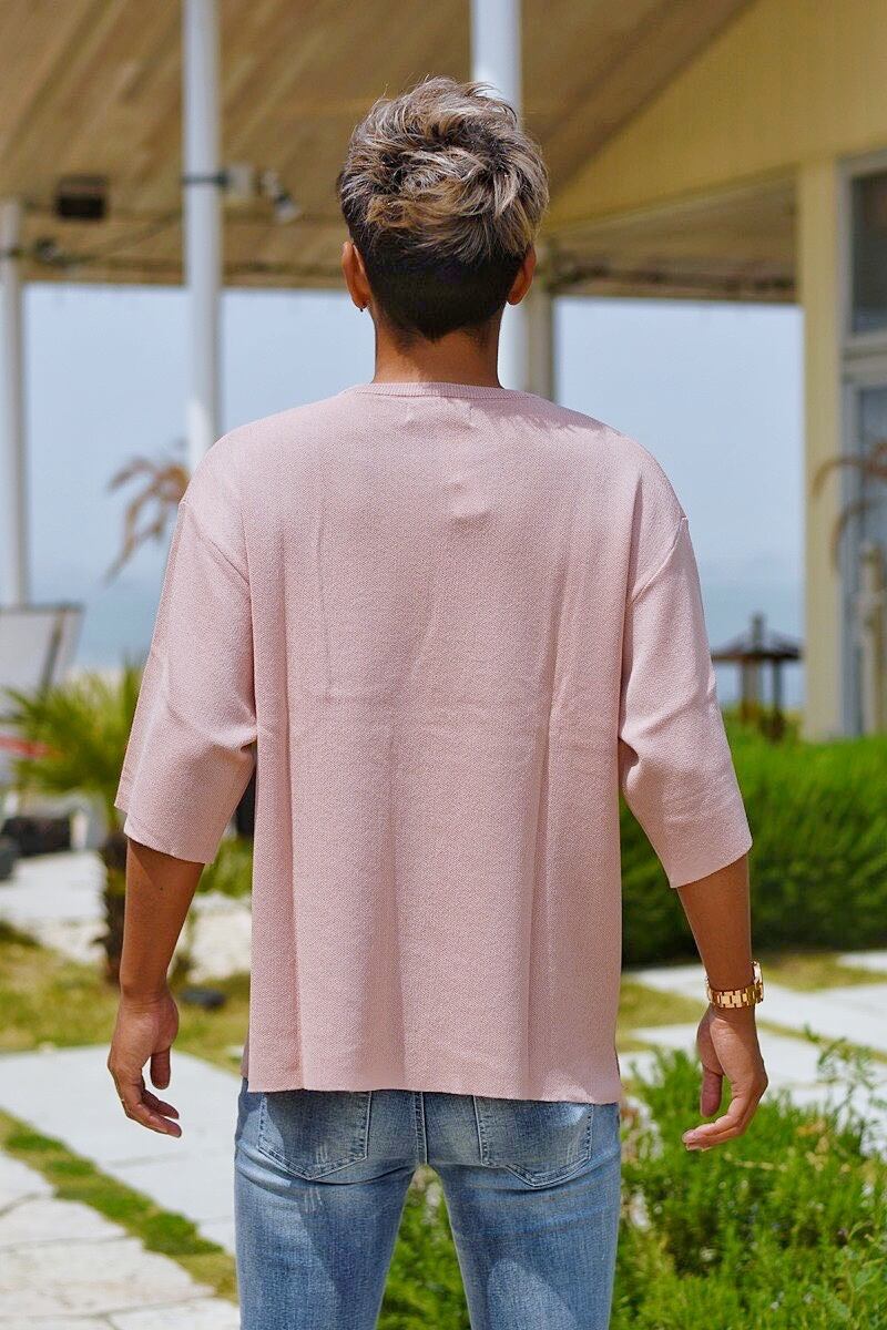 2025 夏 新作 高品質 ☆ クール タッチ サマー ニット メンズ レディース 7分袖 Tシャツ 無地 涼しい 接触冷感 上品 大人 ゆったり オーバーサイズ 海外 カジュアル ファッション