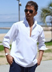夏 薄手 シャツ 七分袖 メンズ 大人 リゾート ファッション