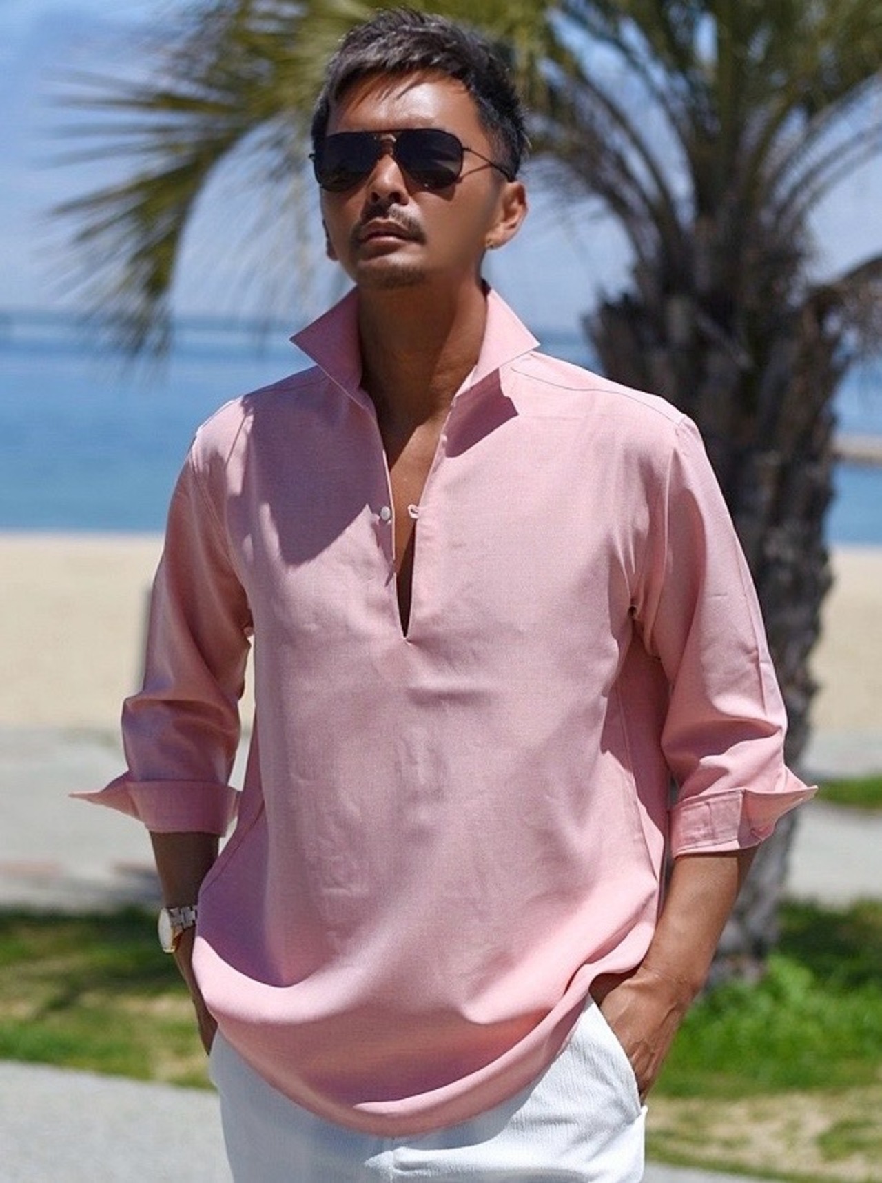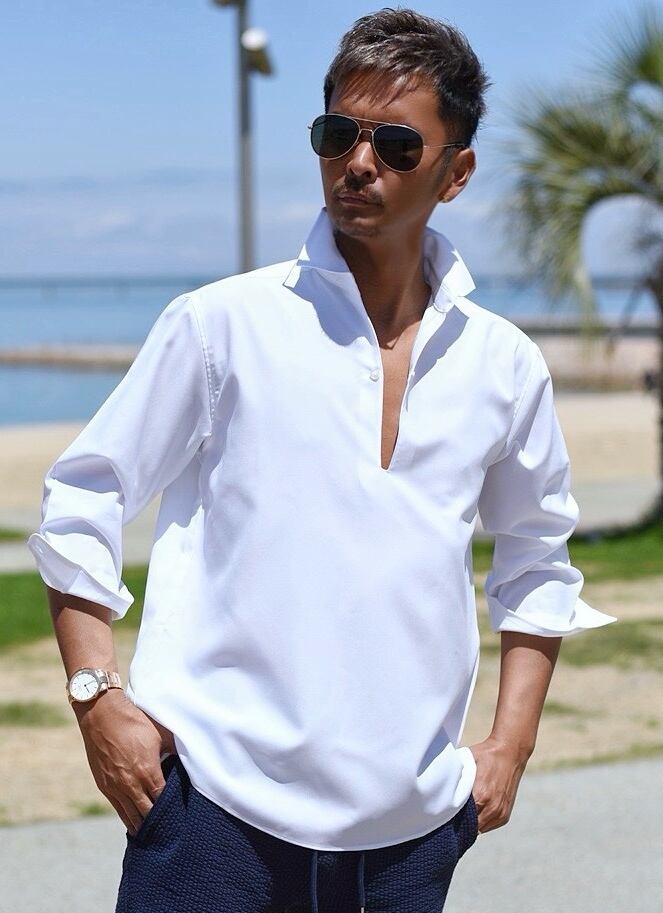 リゾート感を演出してくれるプルオーバータイプの日本製カプリシャツ。