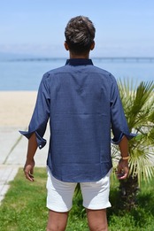 2025 夏 日本製 ☆ 接触冷感 国産 シャンブレー カプリ シャツ 7分袖 メンズ 高品質 ひんやり 冷たい 通気性 薄手 涼しい サマー 海 大人 シンプル カジュアル キレイめ 清涼感 上品 海外 ファッション