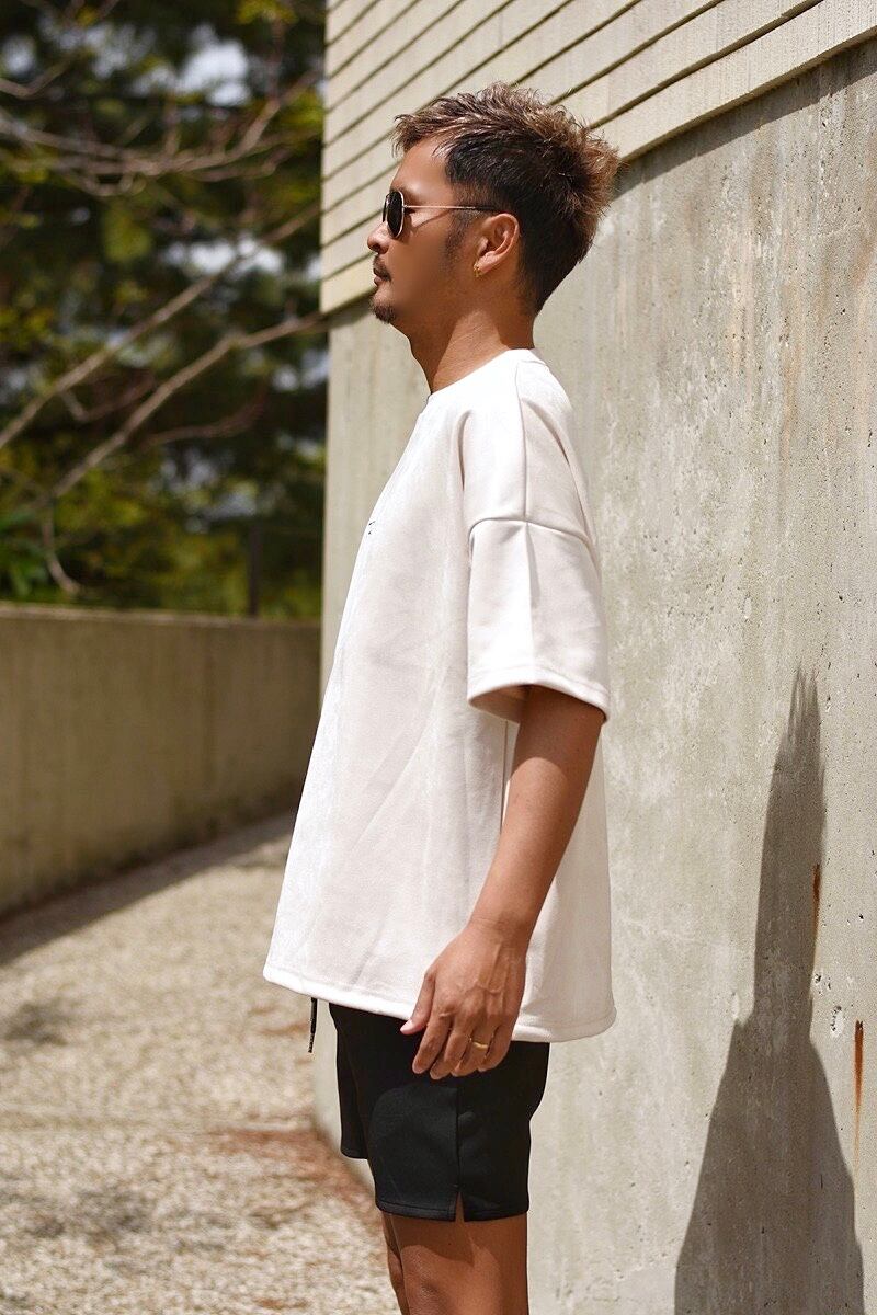 絶妙な微光沢がポイントのスエード素材を使用したルーズシルエットTシャツ。