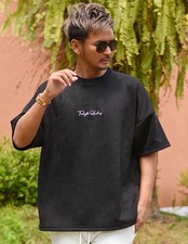 2025 夏 高品質 ☆ スウェード ロゴ 刺繍 ビッグ Tシャツ メンズ レディース スウェット スエード 半袖 上品 無地 シンプル 上質 大人 カジュアル ファッション