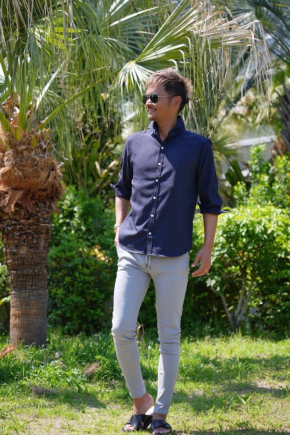 夏 薄手 シャツ 七分袖 メンズ 大人 ファッション