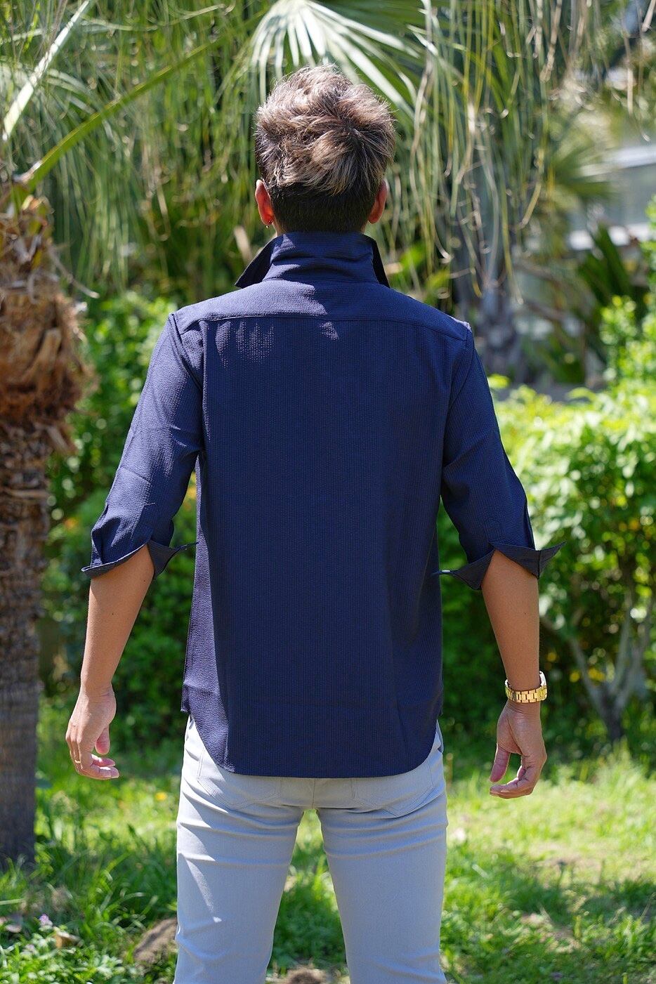 2025 夏 日本製 ☆ 国産 シアサッカー ホリゾンタルカラー シャツ 7分袖 メンズ 高品質 接触冷感 ひんやり 冷たい 通気性 薄手 涼しい サマー 海 大人 シンプル カジュアル キレイめ 清涼感 上品 イタリアンカラー 海外 ファッション
