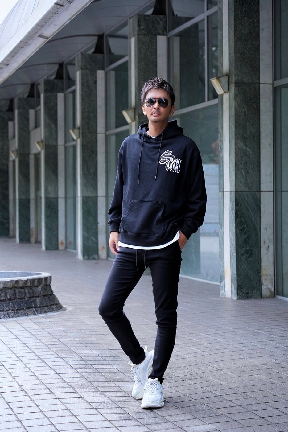 ●同素材のパンツと合わせてストリート感あふれるセットアップスタイルもおすすめ