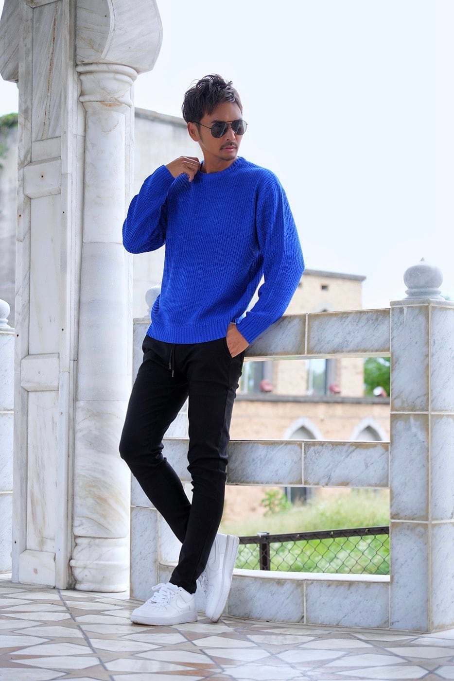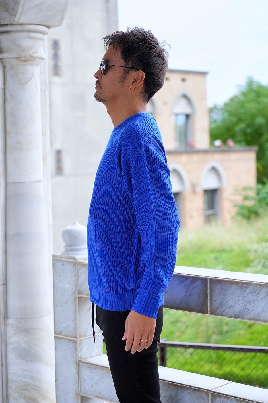 2025 秋 冬 新作 ☆ 畦編み ブルー カラー ニットメンズ レディース セーター 無地 暖かい シンプル 上品 ゆったり ルーズ 海外 カジュアル ファッション