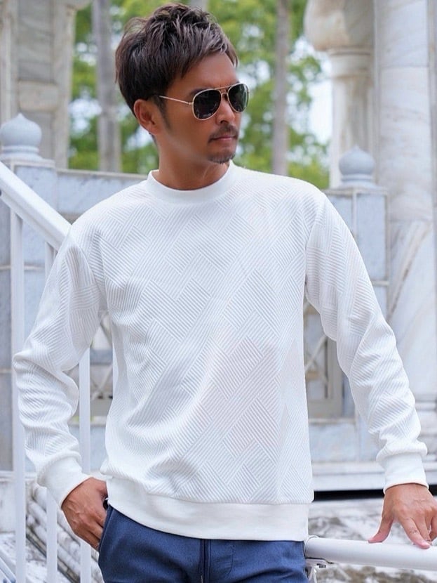 ジャガード加工ならではの高級感艶感が増しワンランクアップするトレーナー。