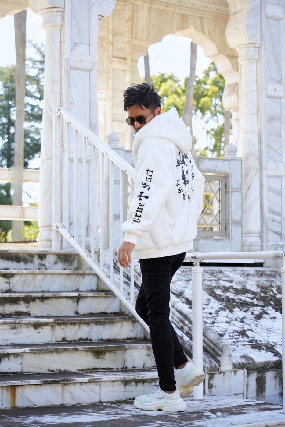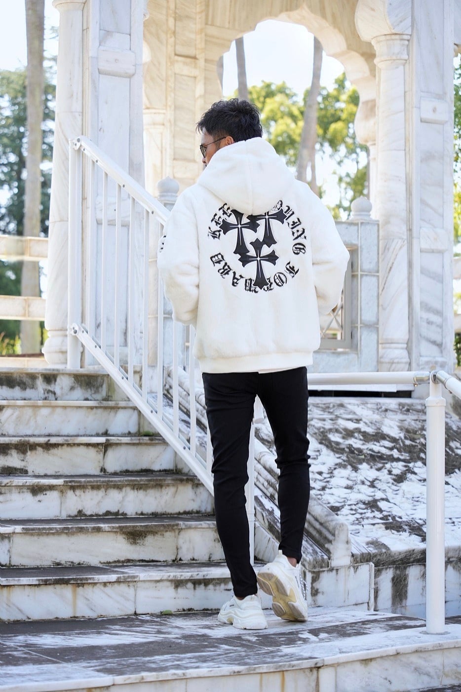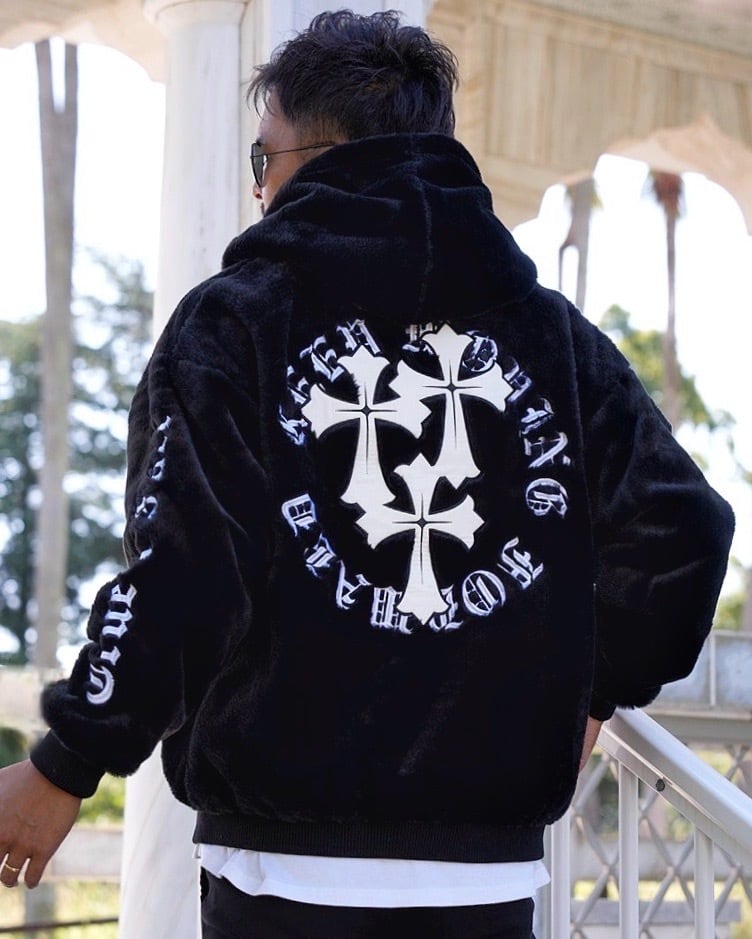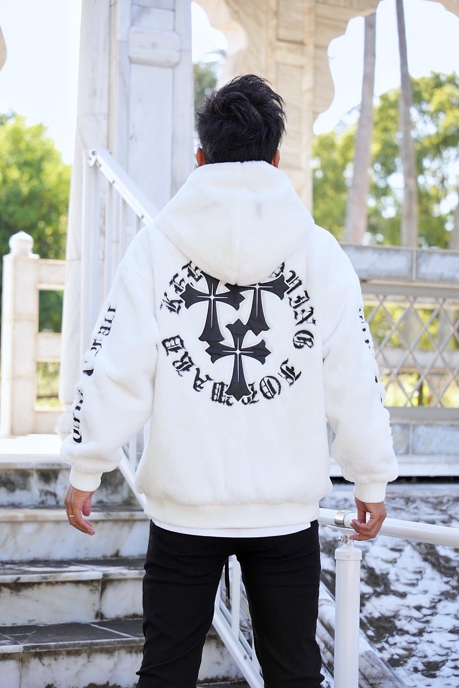 2025 新作 冬 高品質 ☆ オールドイングリッシュ クロス ロゴ ファー ジャケット メンズ レディース パーカー フード ブルゾン 暖かい 上品 もこもこ 海外 ファッション