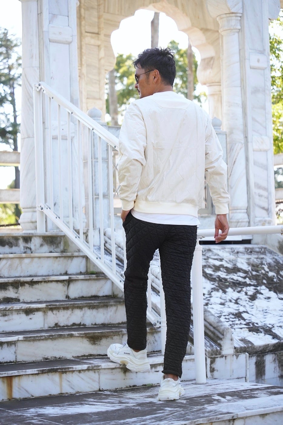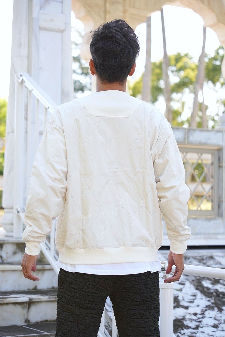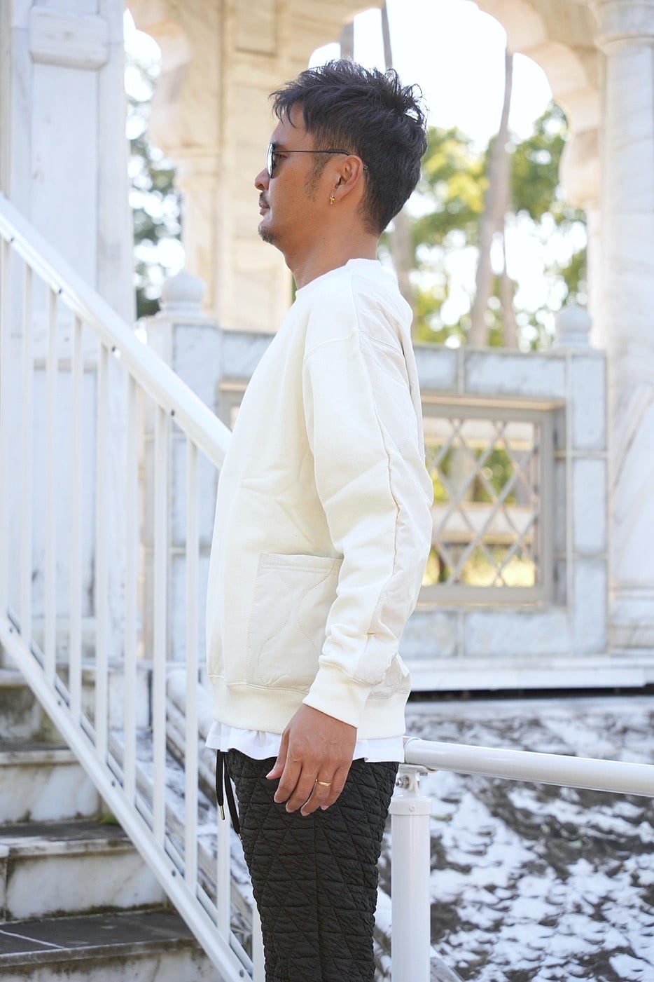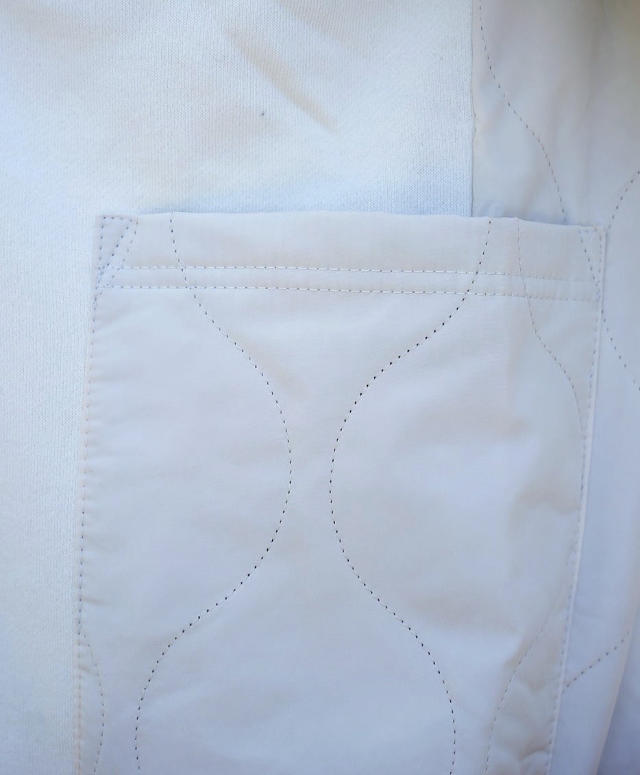 袖、サイド、バックをキルティング生地で大胆に切り替えたインパクト抜群の長袖トレーナー。