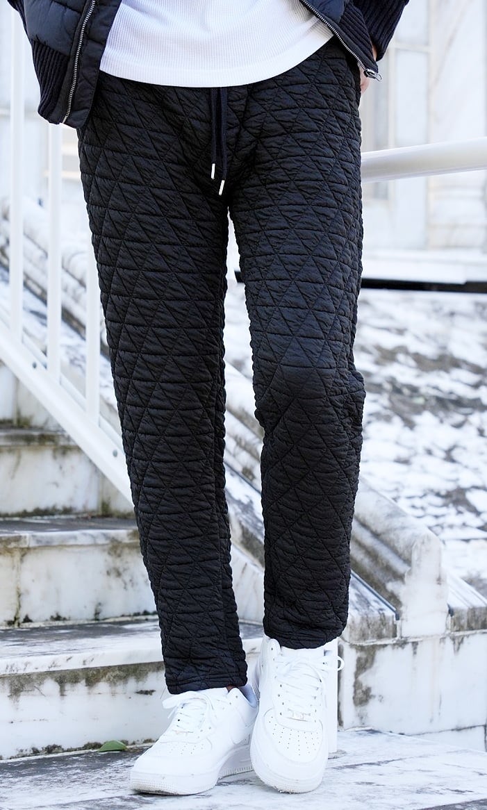 2025 新作 冬 高品質 ☆ キルティング リラックス パンツ メンズ 暖かい 防寒着 保温性 スウェット 伸びる スリム 無地 大人 イージー テーパード キレイめ カジュアル 海外 ファッション