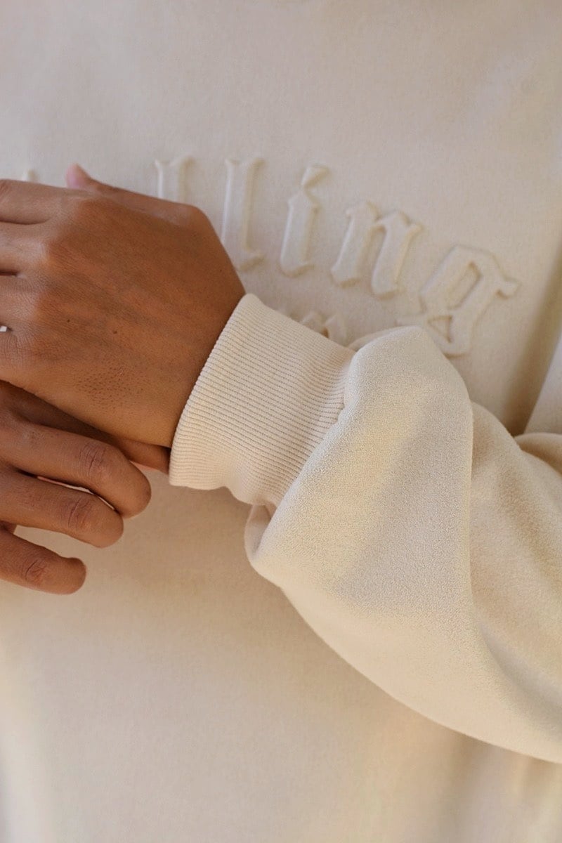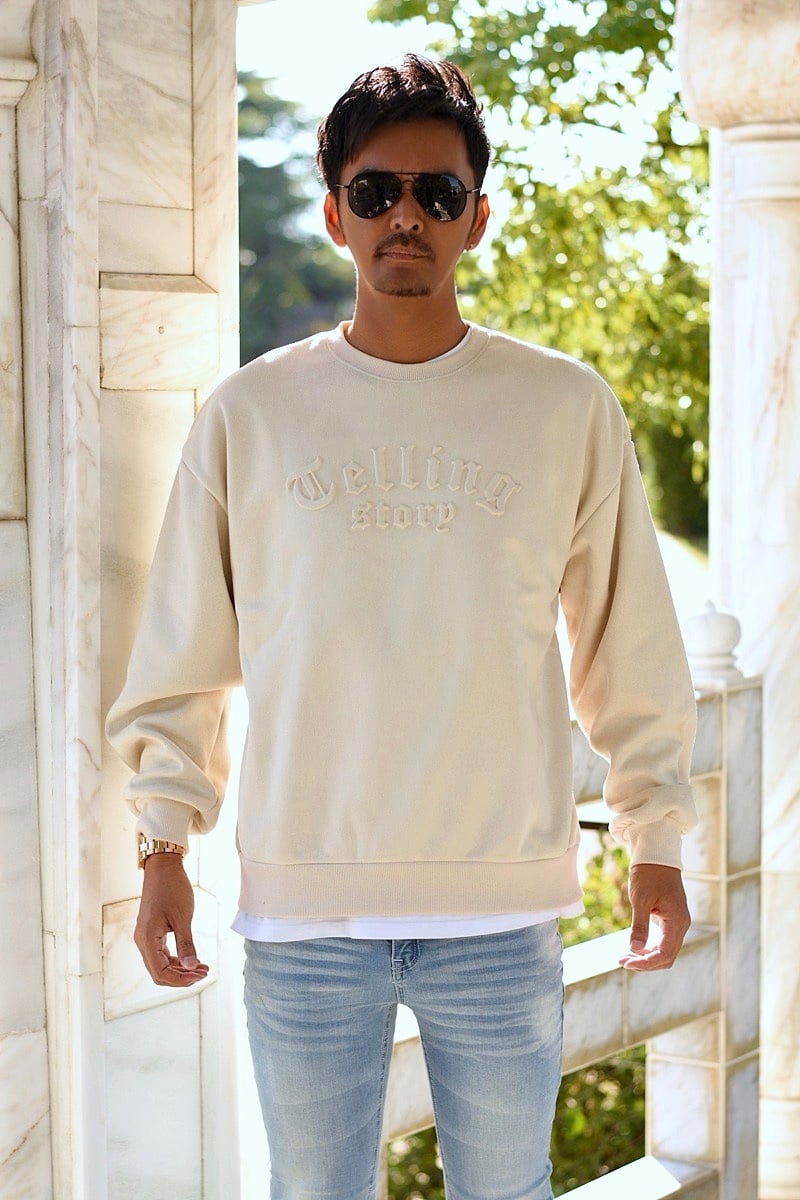 立体感のあるエンボスロゴを大胆に施した大人の遊び心をくすぐるエンボススエードトレーナー。