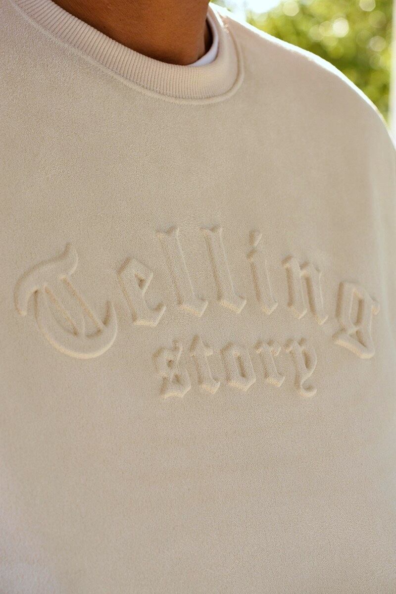 [ オールドイングリッシュ エンボス ロゴ ボンディング スウェード トレーナー ]