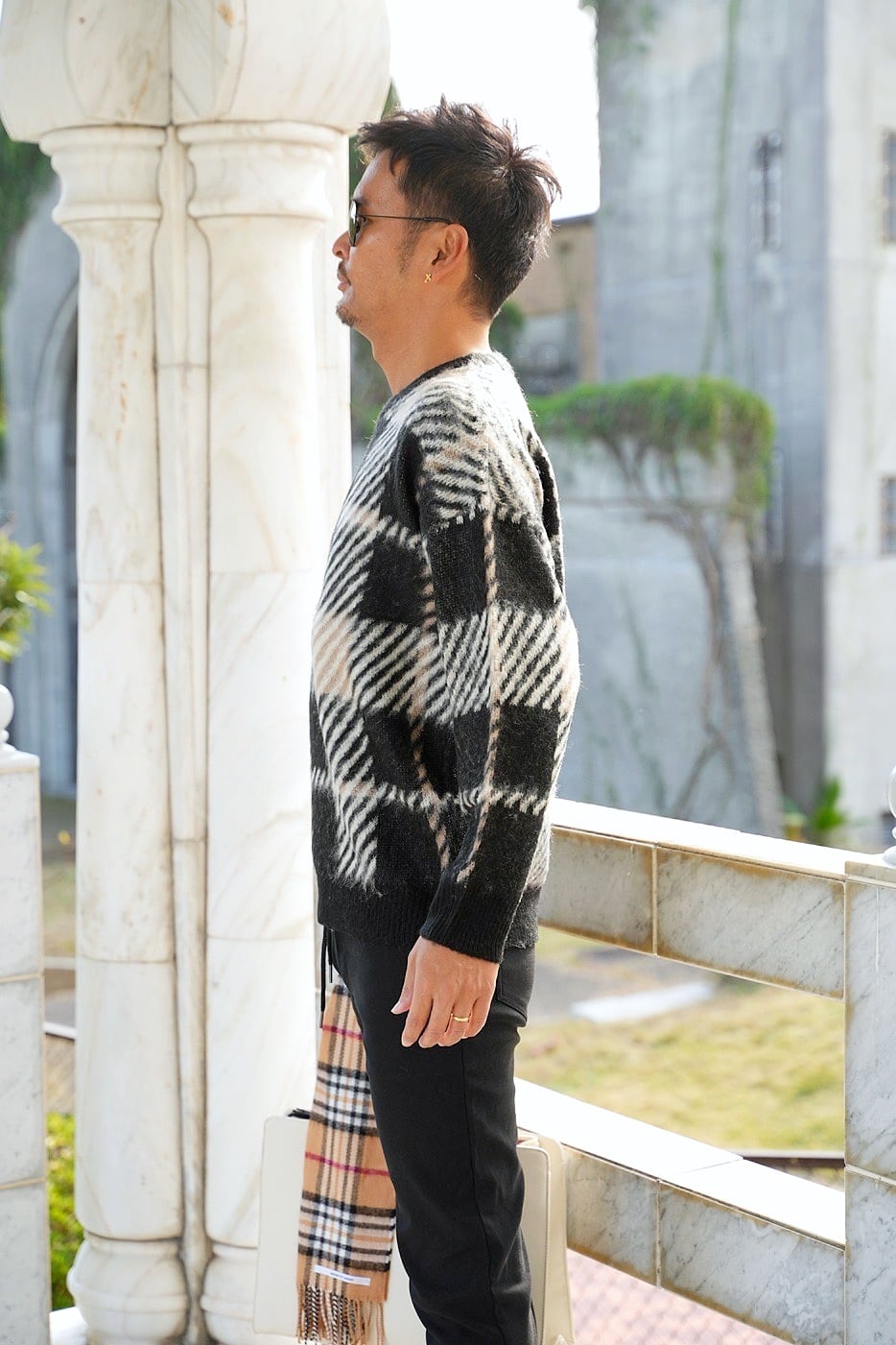 チェック モヘア ニット セーター スウェット メンズ 冬 ファッション
