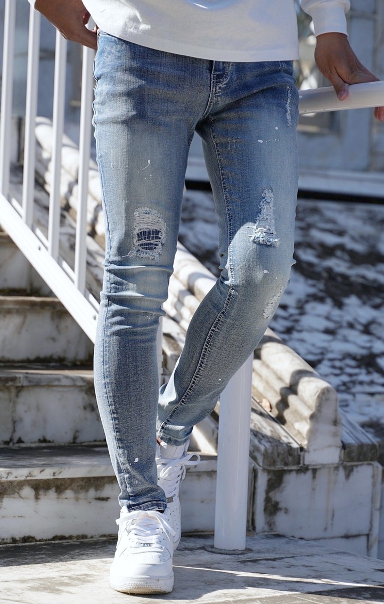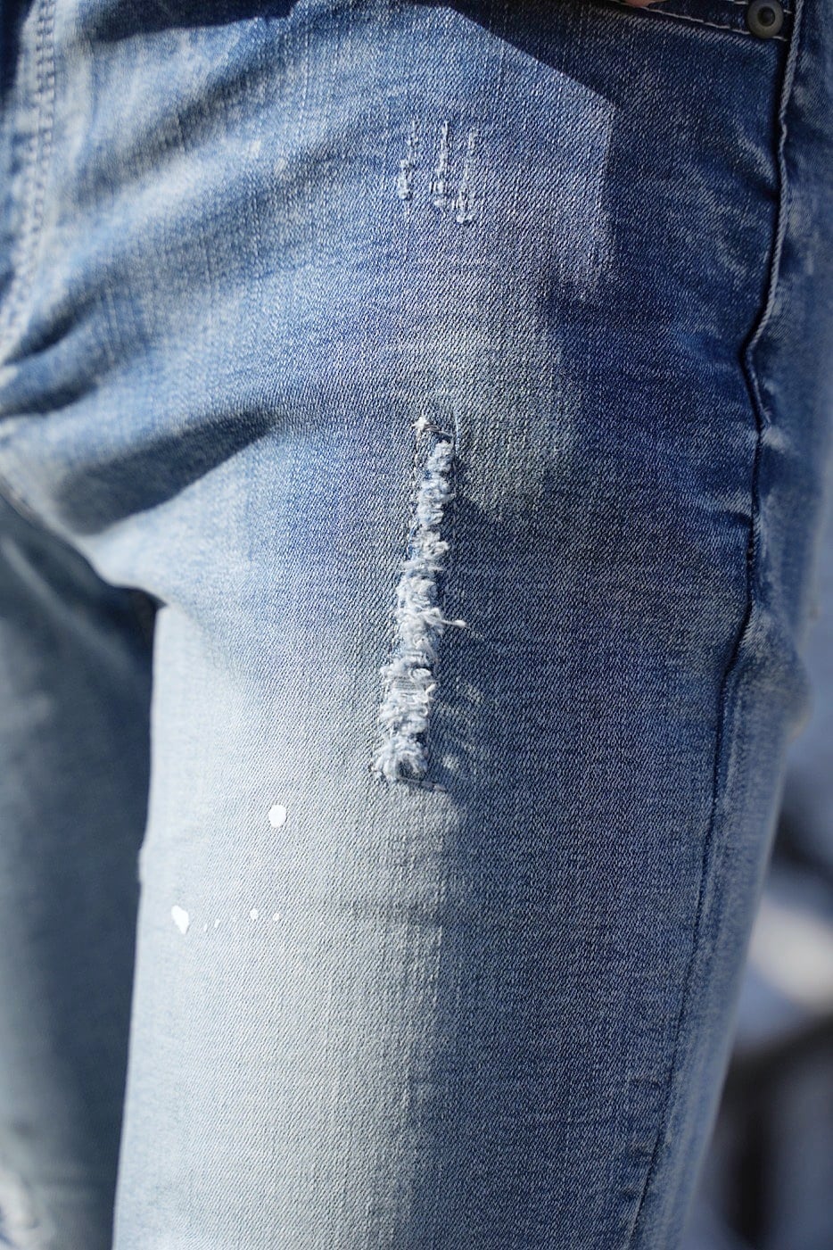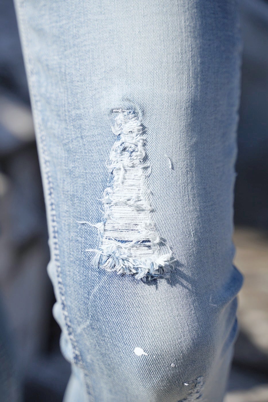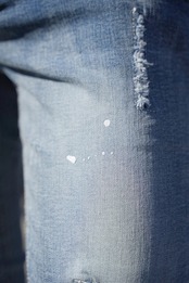 絶妙なダメージ加工と散らしたペンキを盛り込みデザイン性を追及したダメージジーンズ。