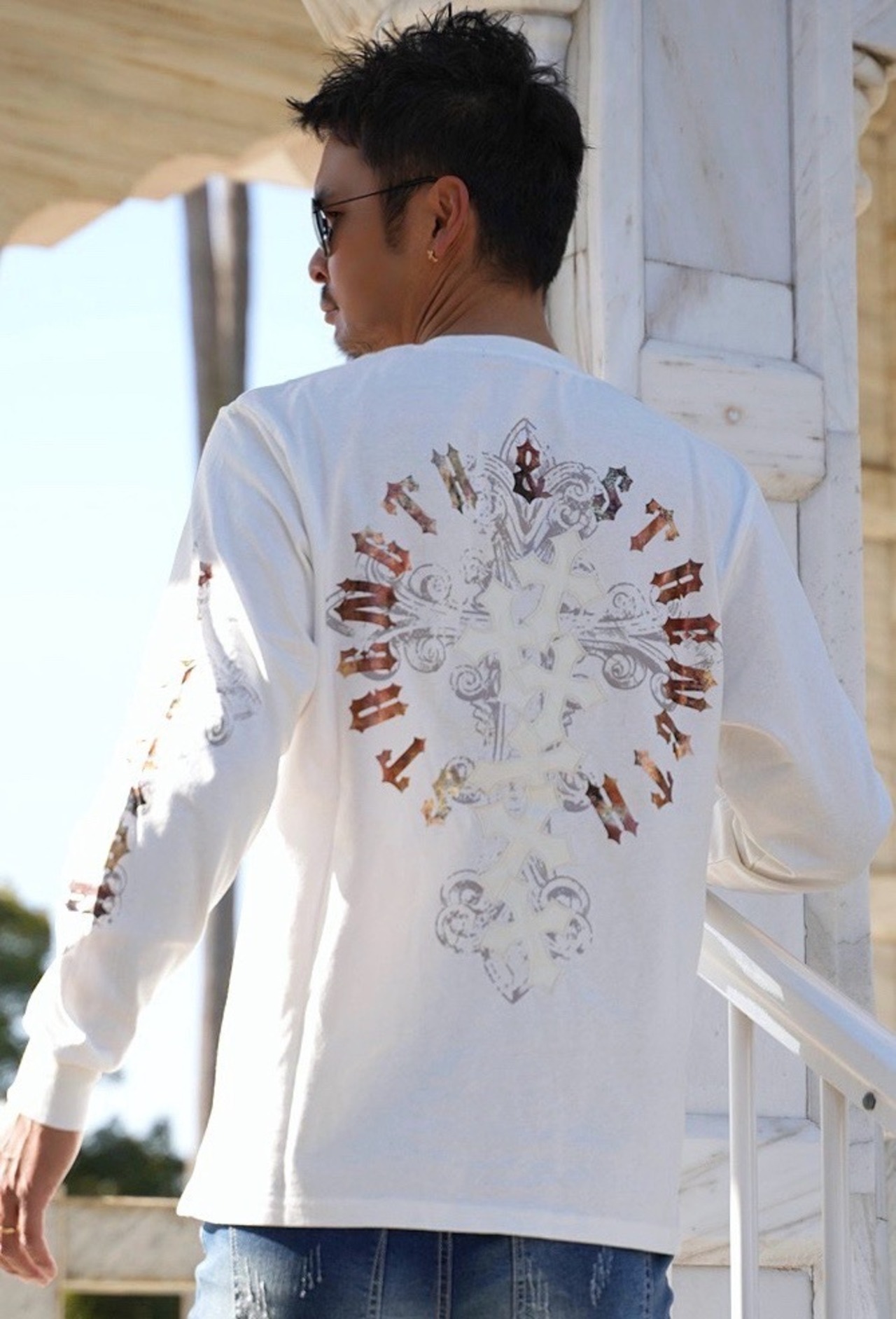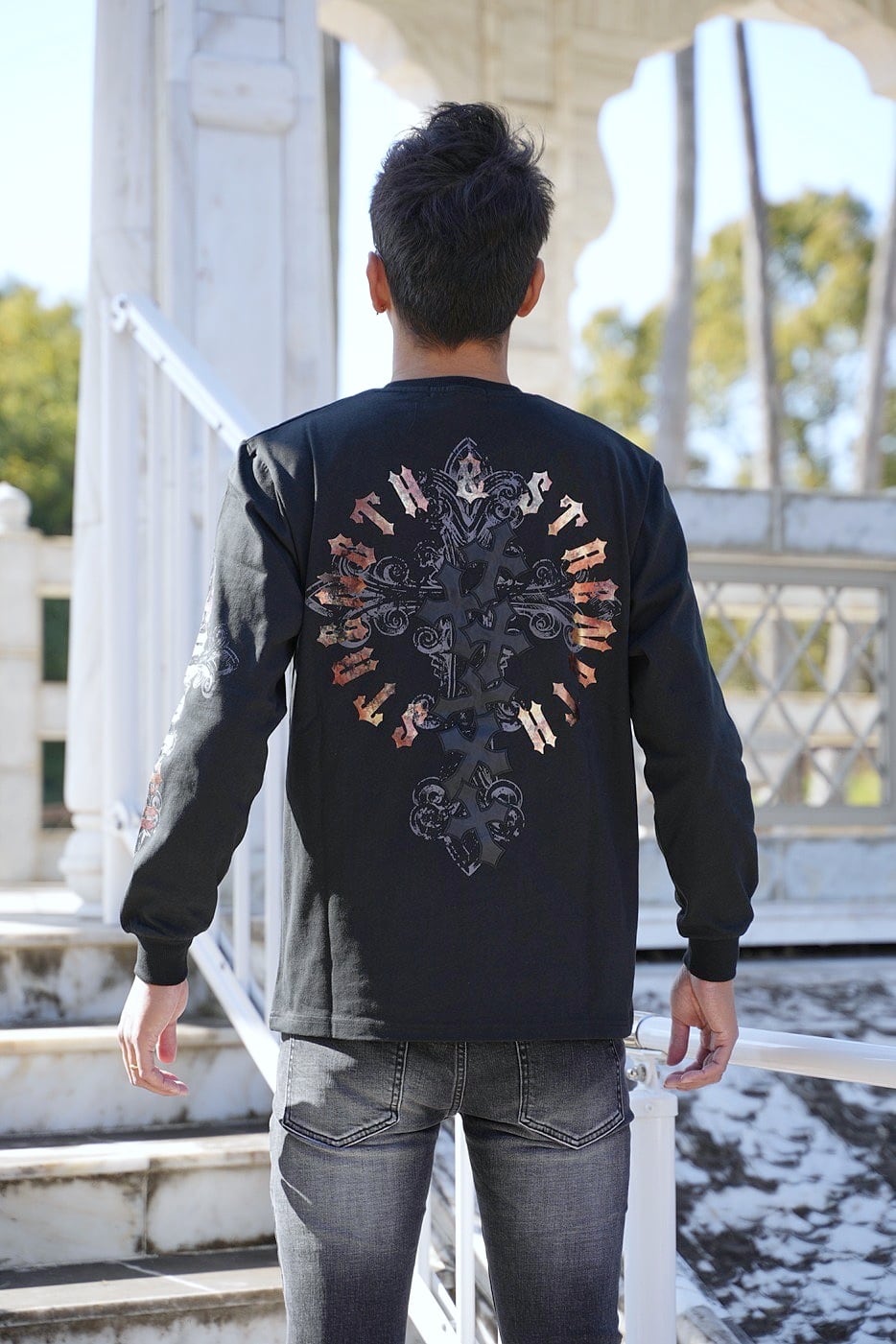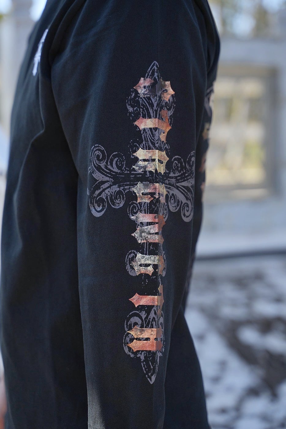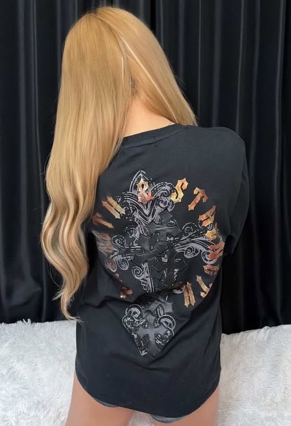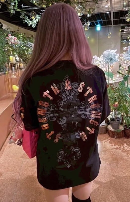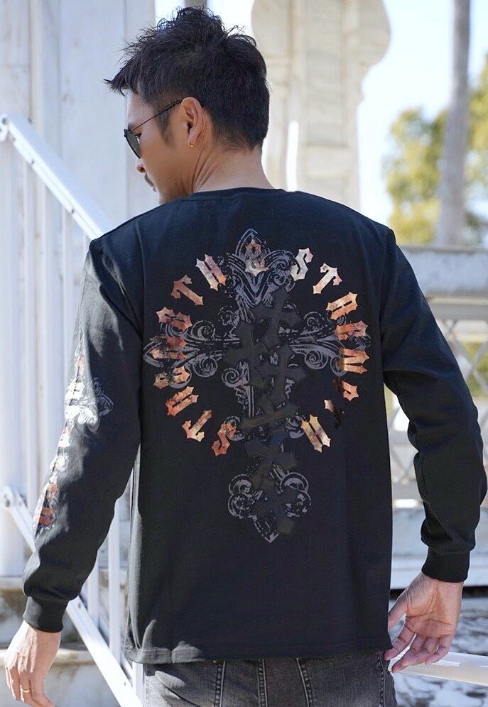 2026 新作 ☆ クロス オールドイングリッシュ フォイル プリント ロゴ ロンT メンズ レディース 長袖 Tシャツ 海外 ファッション