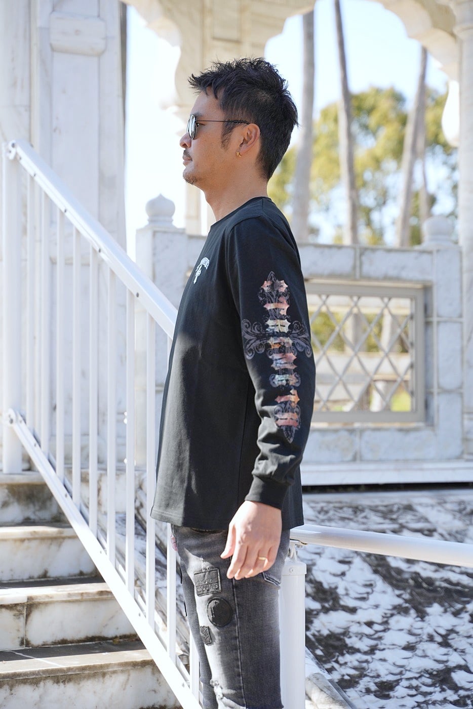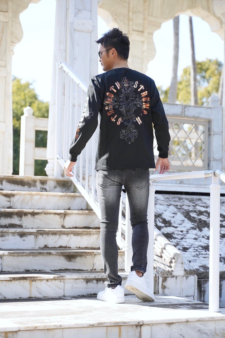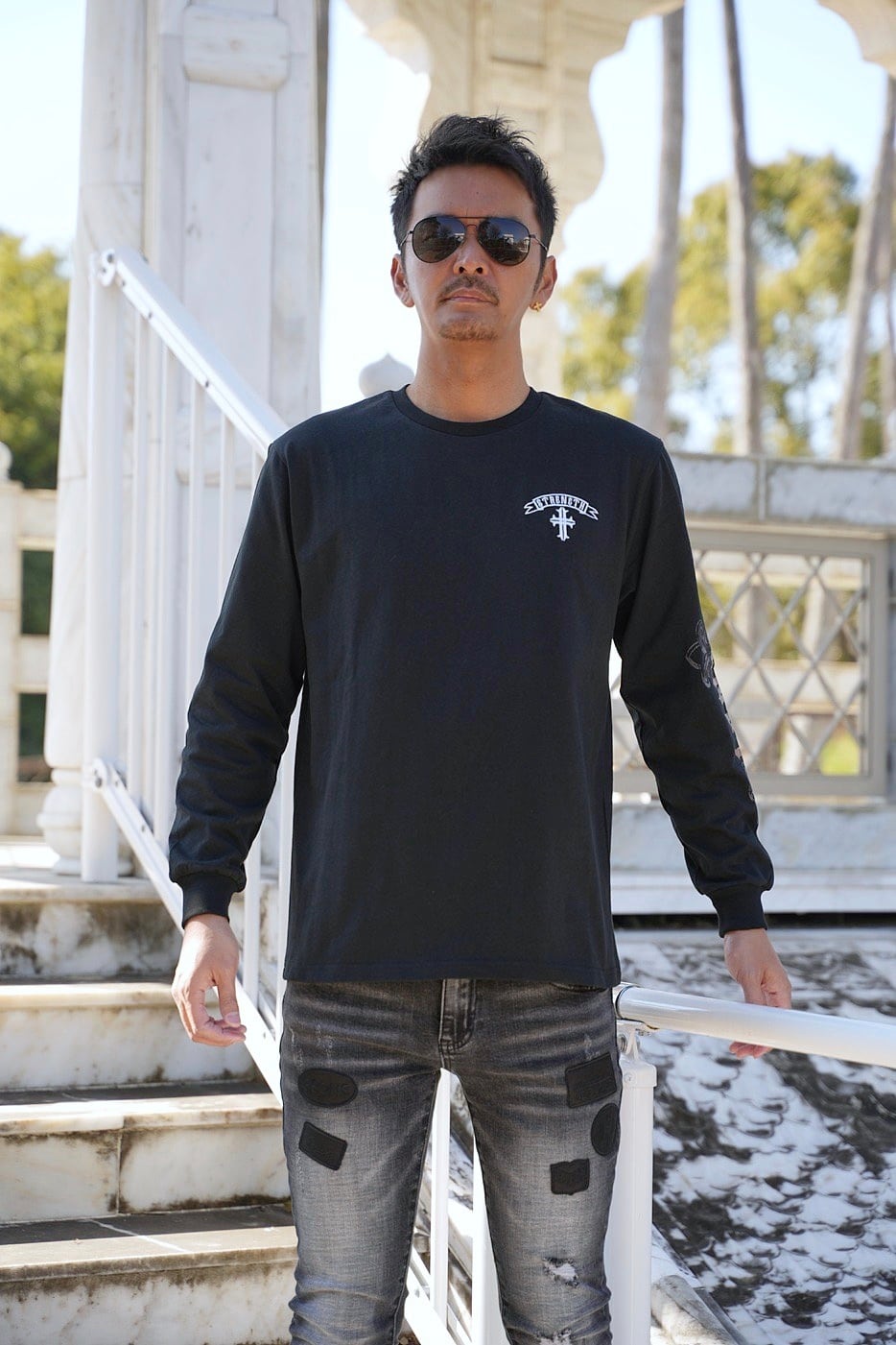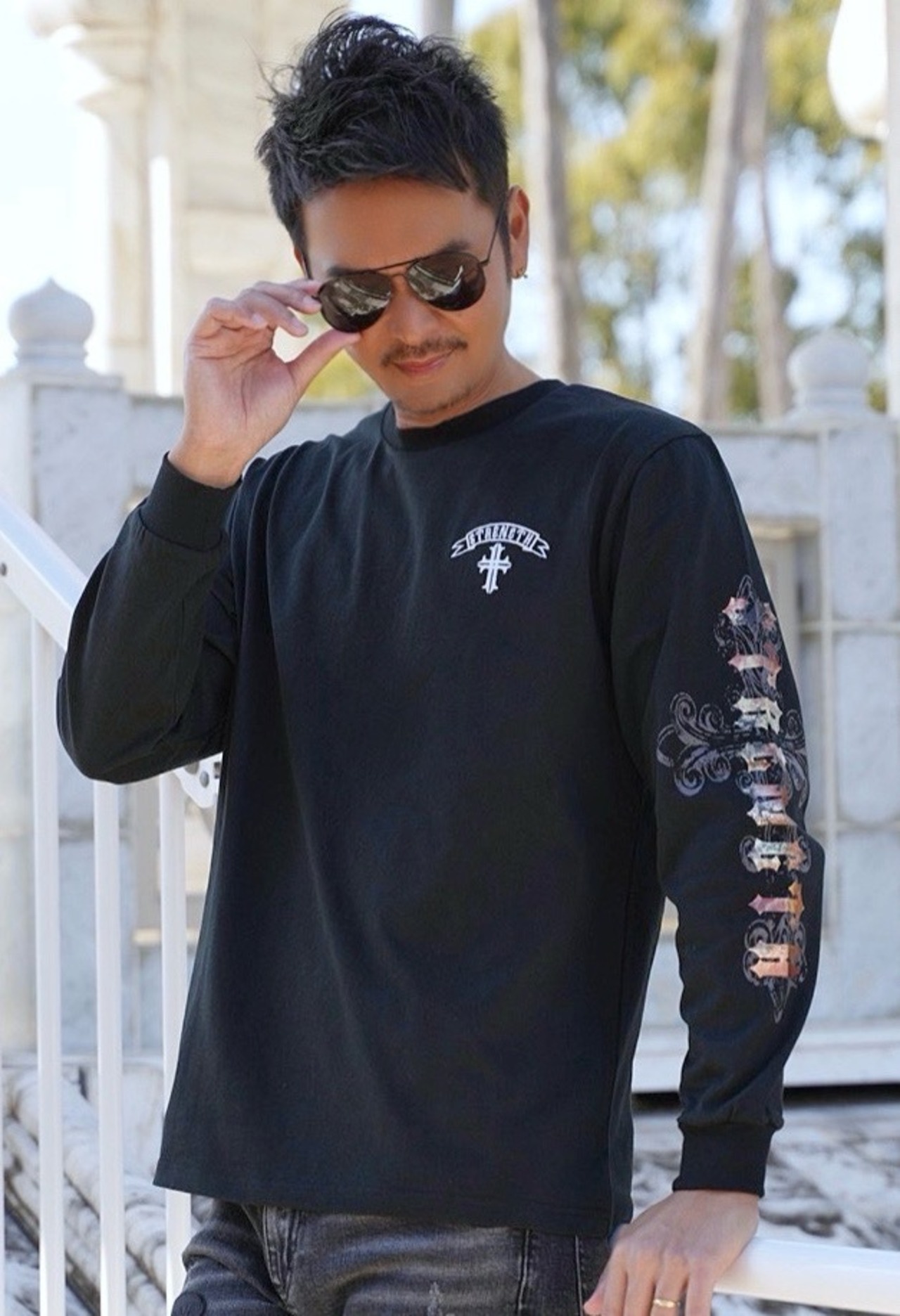 2026 新作 ☆ クロス オールドイングリッシュ フォイル プリント ロゴ ロンT メンズ レディース 長袖 Tシャツ 海外 ファッション