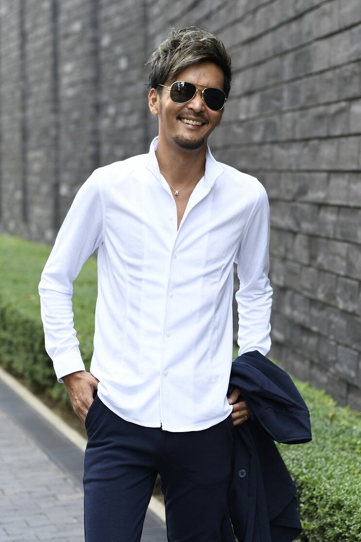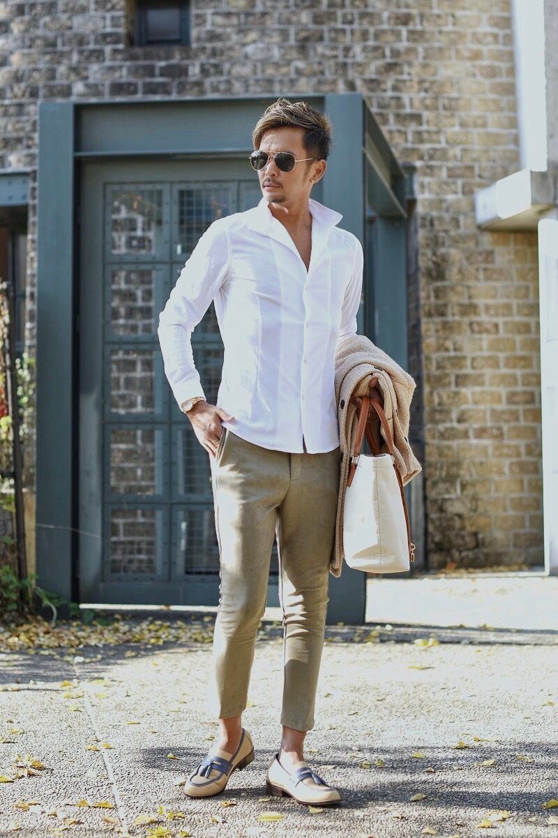 長すぎず短すぎない絶妙な着丈がポイント、裾をタックインしてもアウトしてもスッキリとまとまります。
