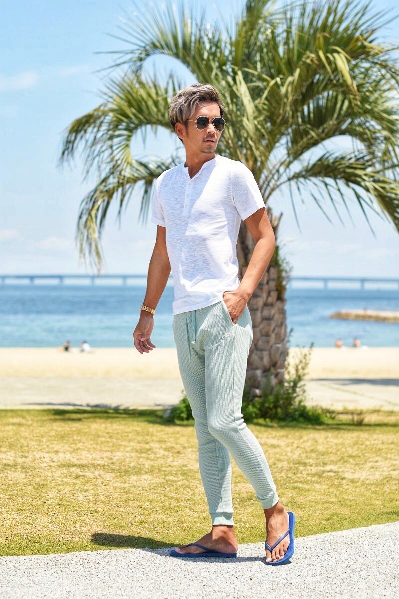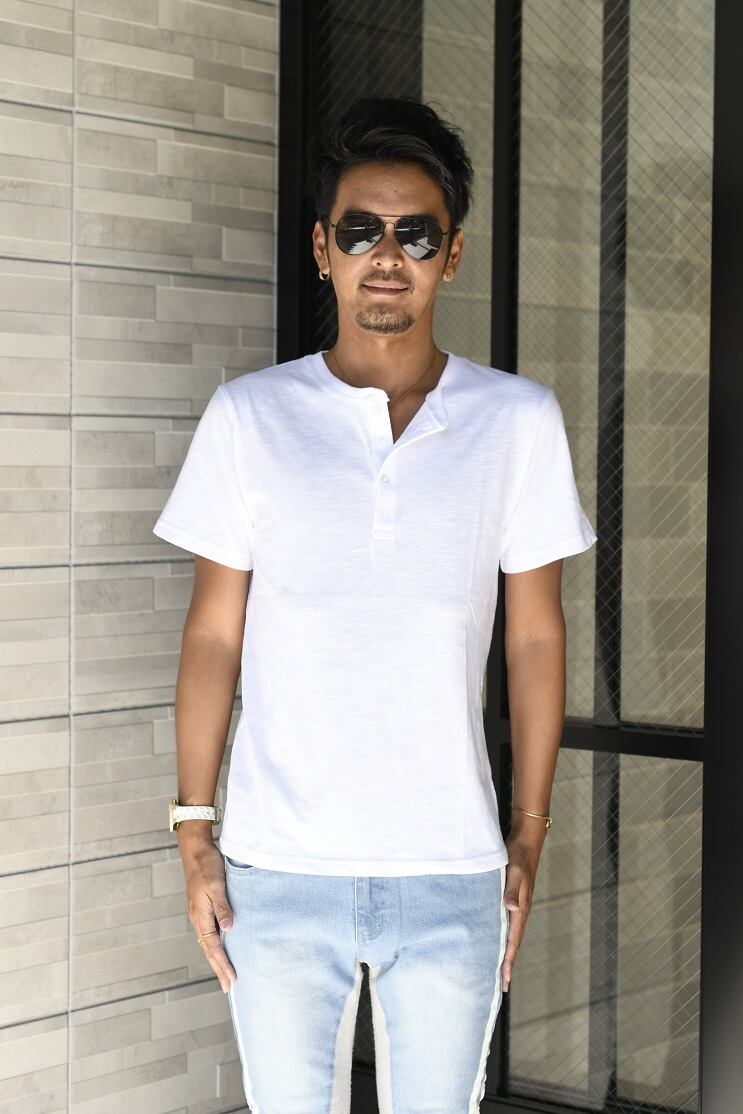 アイポイントが高いヘンリーネックは お洒落上級者的に魅せてくれるスラブヘンリーネックTシャツ。