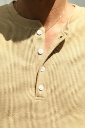 しっかりとした厚みと凹凸のある表面が特徴のサーマル生地を採用。