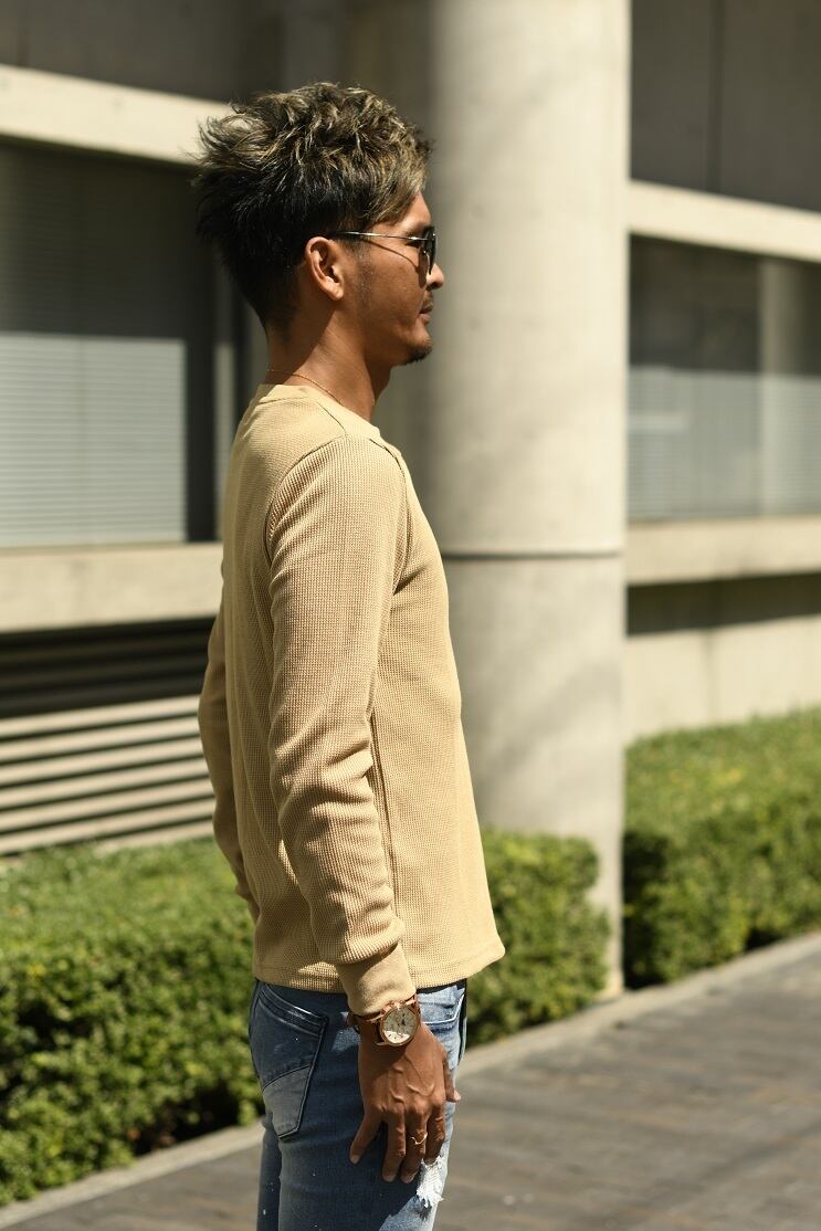 通常ネックとは違い、胸元にニュアンスや変化、アクセントを出せるヘンリーネック。