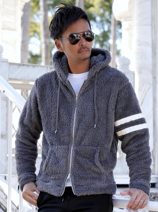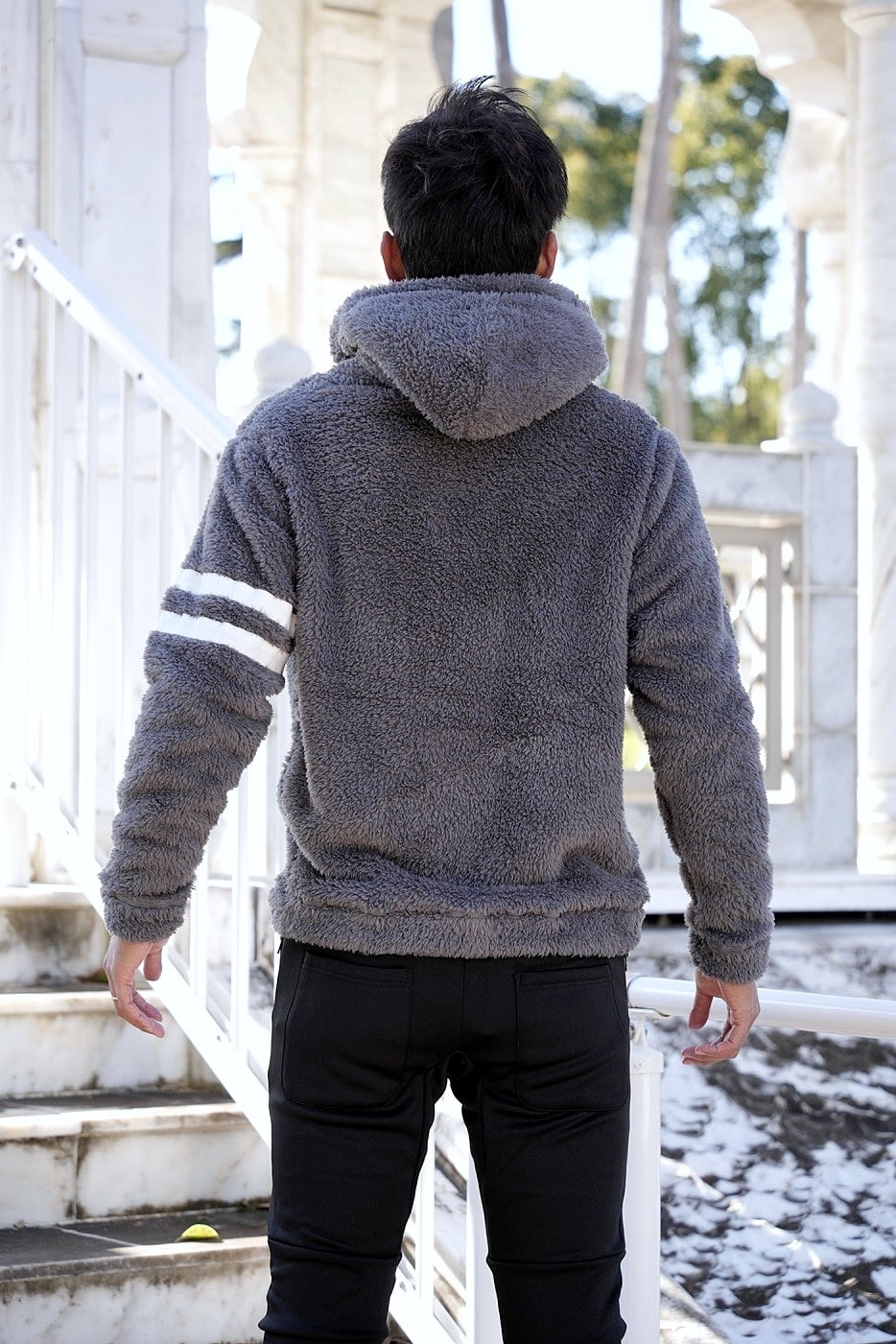 2025 冬 新作 ☆ ボア ライン ファー ジャケット パーカー メンズ ブルゾン フード フーディー 防寒着 ふわふわ 暖かい もこもこ ルームウェア 海外 ファッション