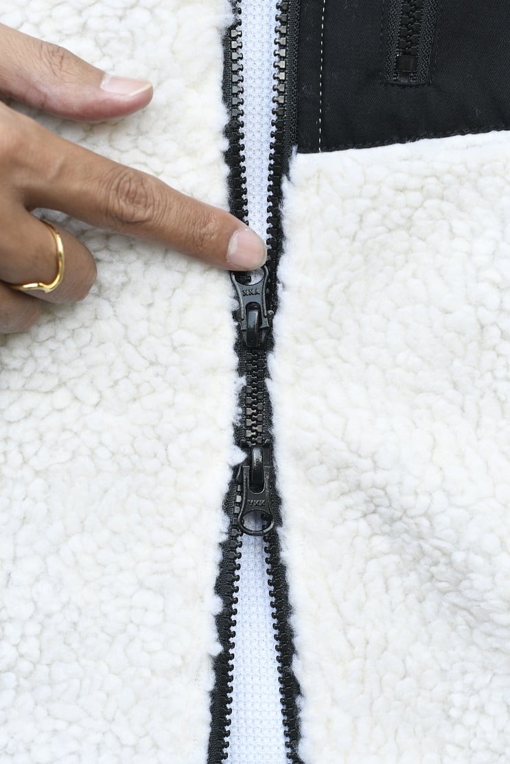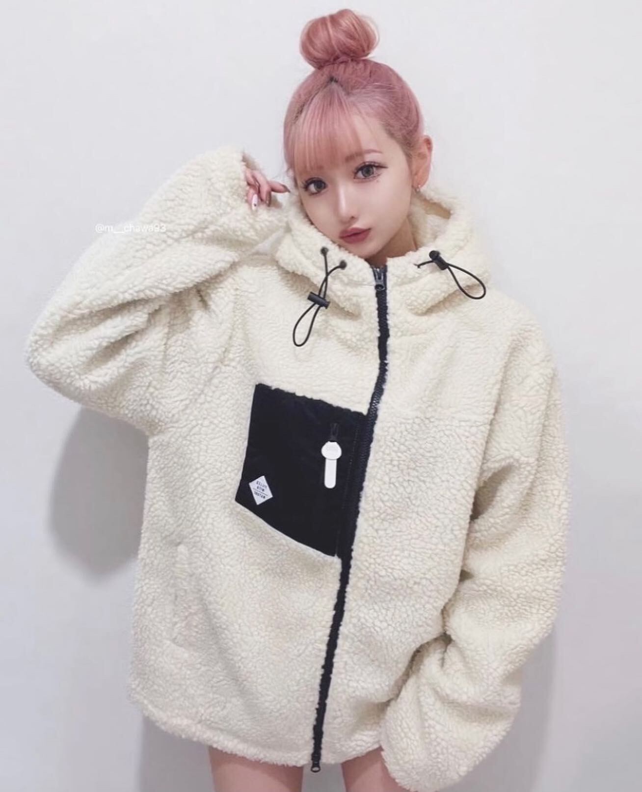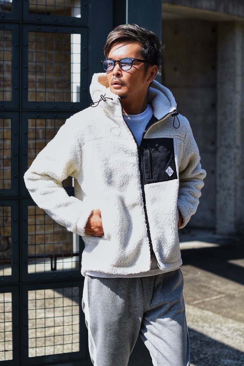 モコモコとした手触りの暖かなボア素材で温もりを与えてくれるパーカー。