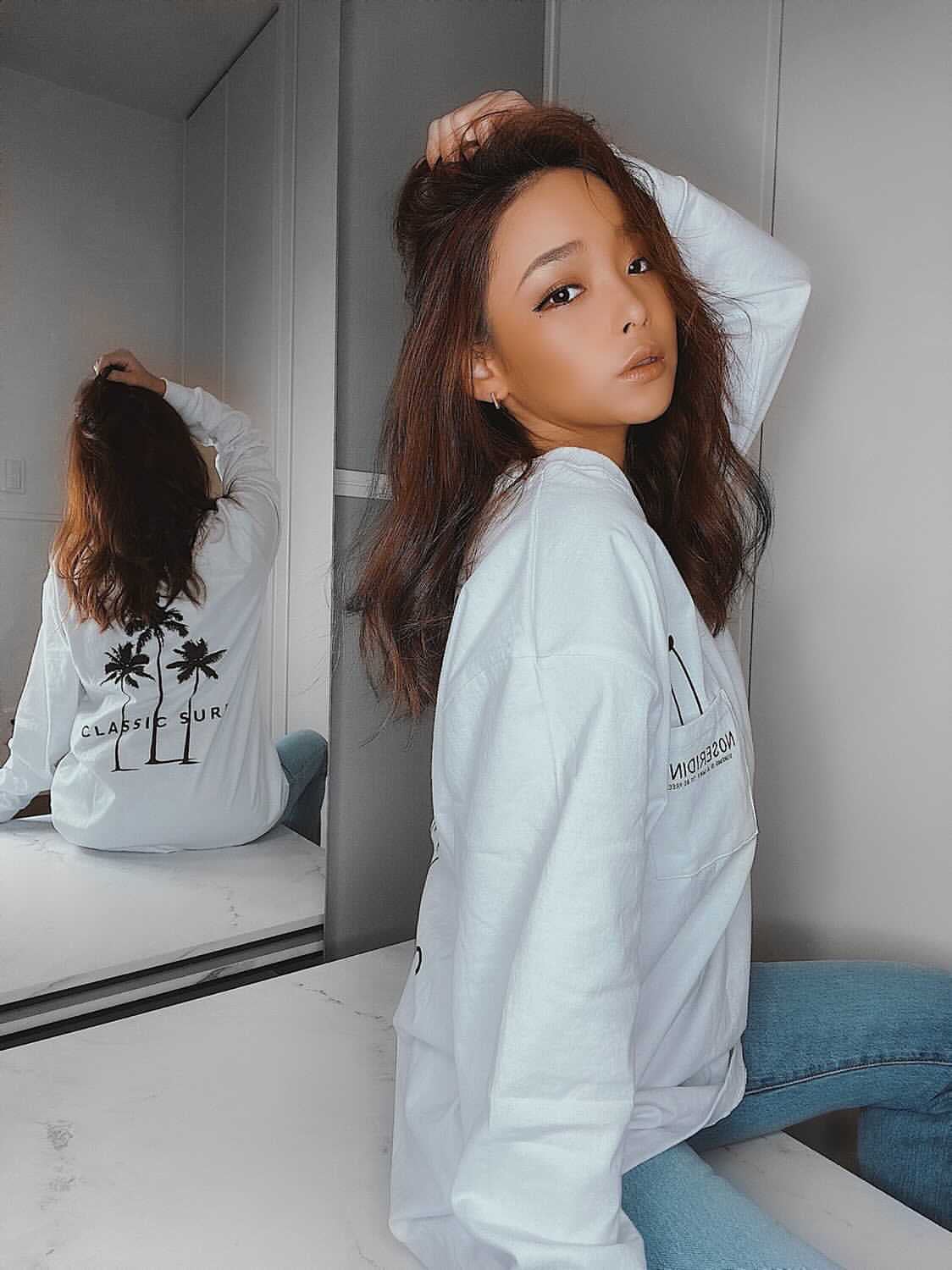 ドロップした袖付けと、ほどよいルーズなシルエットでトレンド感も◎