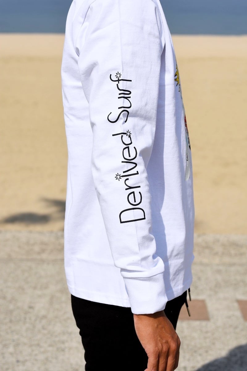 フロントのカリフォルニアのビーチをイメージした大きなプリントが特徴的で目を惹くロンT。