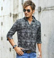 [ イタリアンカラー モザイク チェック 7分袖 ポロシャツ ]