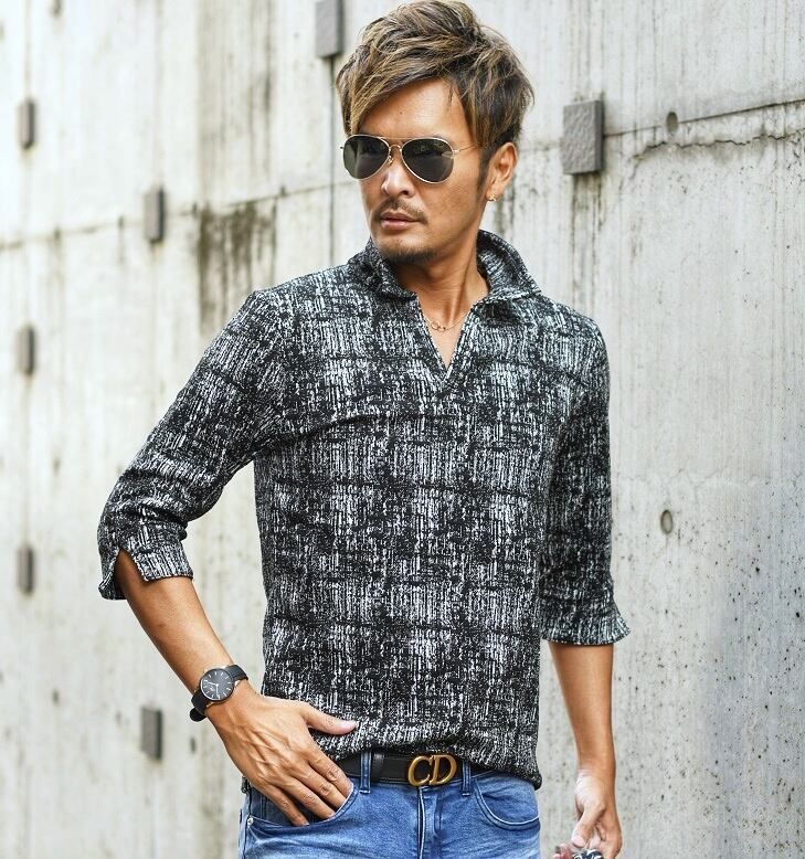 高品質 ☆ イタリアンカラー モザイク チェック 7分袖 ポロシャツ メンズ ポロ Tシャツ 大人 カジュアル 上品 シンプル キレイめ 海外 ファッション