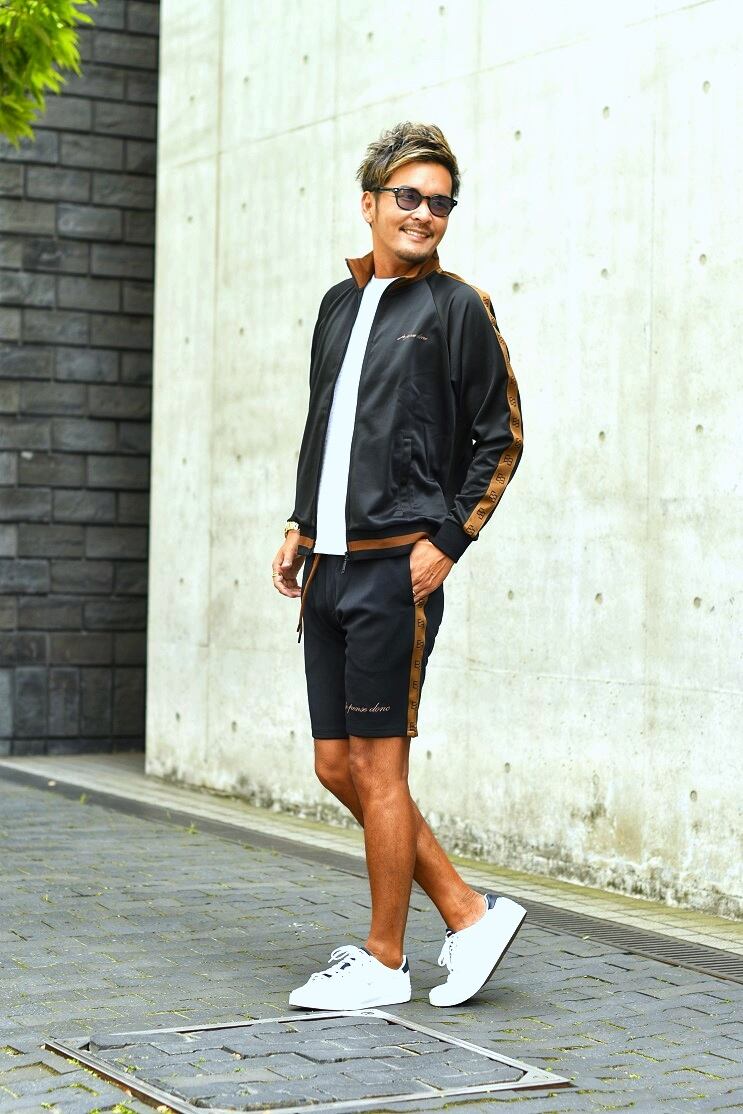 ☆ モノグラム サイドライン ポンチ トラックジャケット メンズ スウェット ジャージ パーカー ラグスポ スポーツ スポーティ 接触冷感 ルームウェア アウター 海外 ファッション