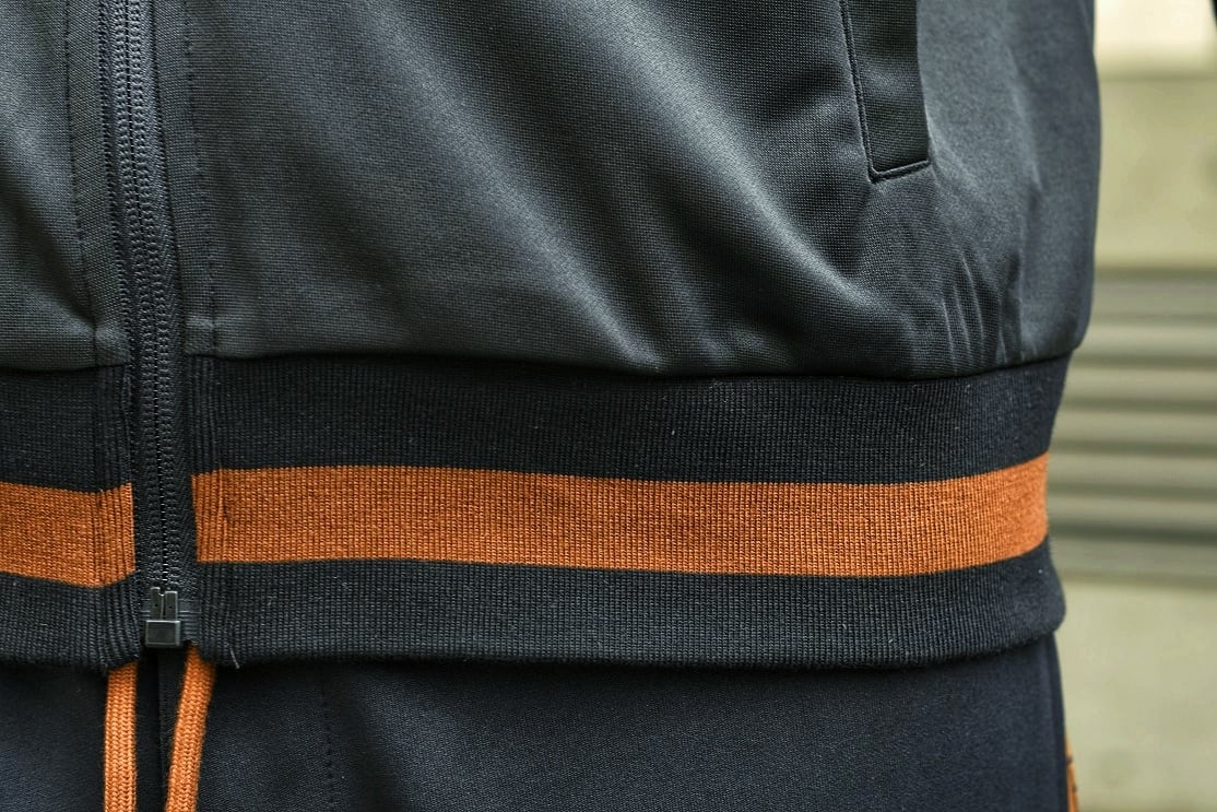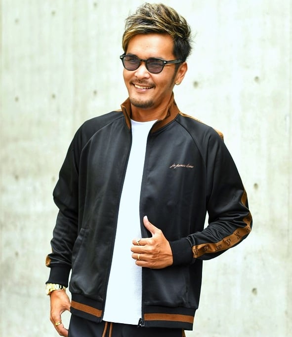 サイドラインにロゴテープを施したスポーティーなデザインのトラックジャケット 。