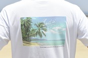 バックプリントには爽やかなリゾートフォトで夏らしい演出を加速してくれる。