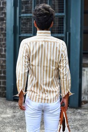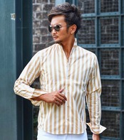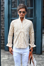 [ ストライプ イタリアンカラー シャツ ]
