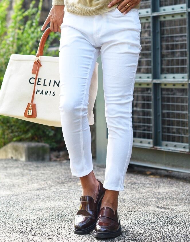 シルエットが綺麗にシンプルで大人のスキニーパンツ。