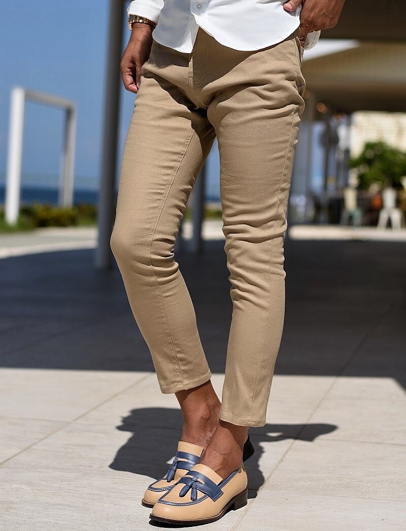 定番 人気 ☆ シンプル シルエット スキニー アンクル パンツ メンズ スリム チノ 美脚 ストレッチ 無地 大人 キレイめ カジュアル 海外 ファッション