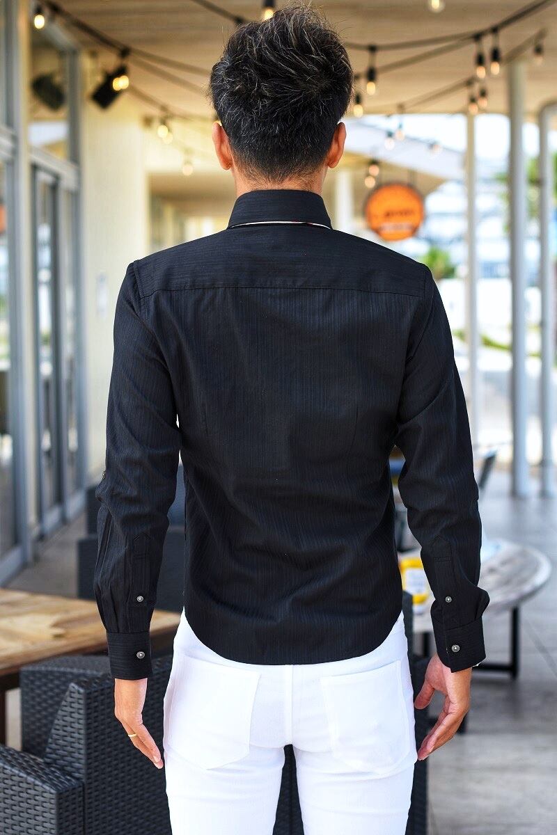 リバーシブルストライプと呼ばれる高級素材を使用したこのシャツ。