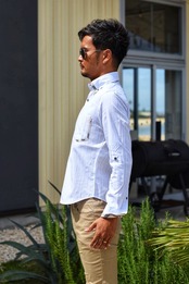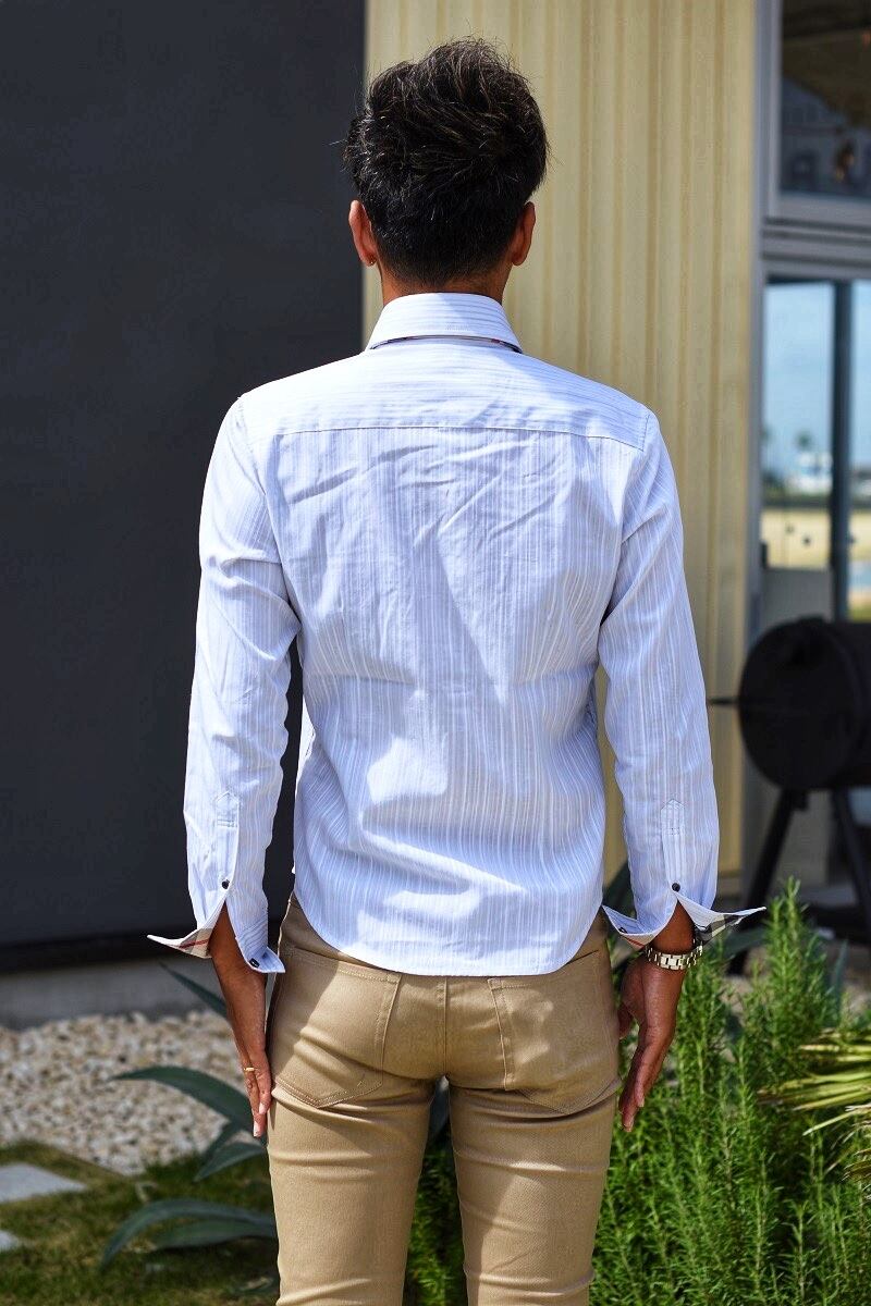 リバーシブルストライプと呼ばれる高級素材を使用したこのシャツ。