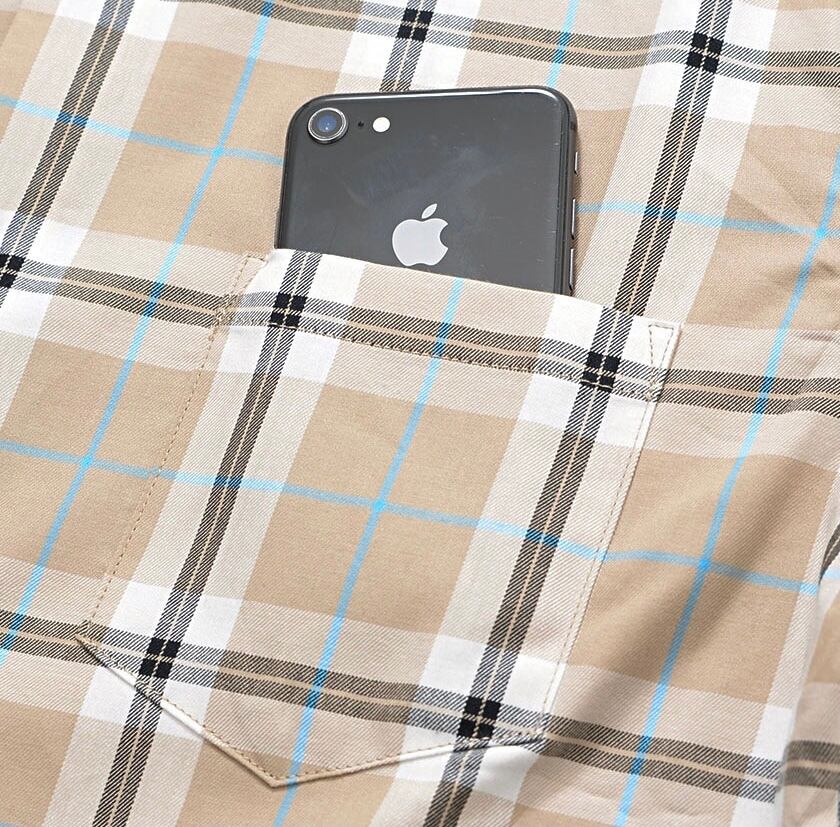 落ち着いたデザインなので幅広い年代の方に着ていただけるチェックシャツです。