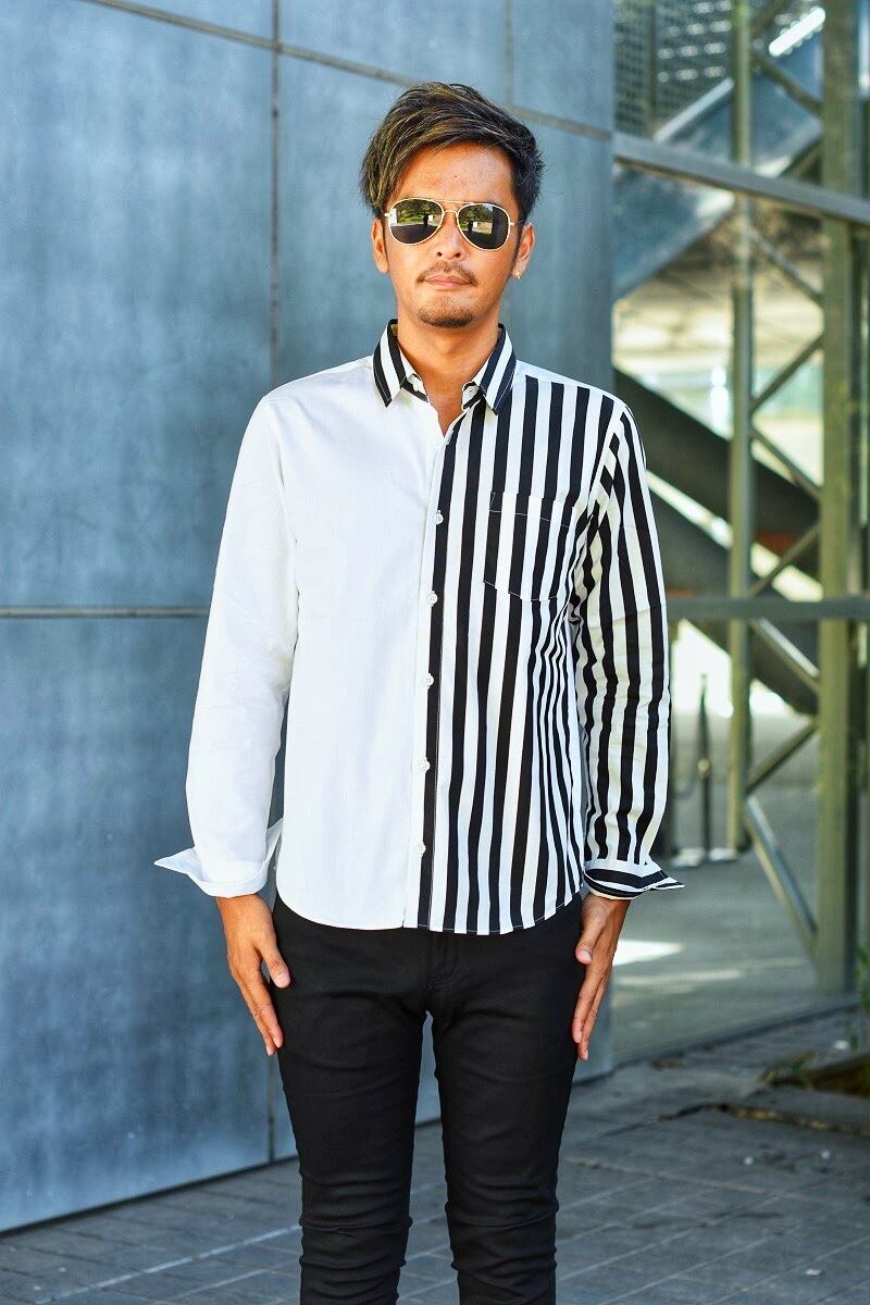 ☆ 高品質 ストライプ 切り替え レギュラーカラー シャツ メンズ 長袖 上品 大人 きれいめ シンプル ビジネス 海外 ファッション