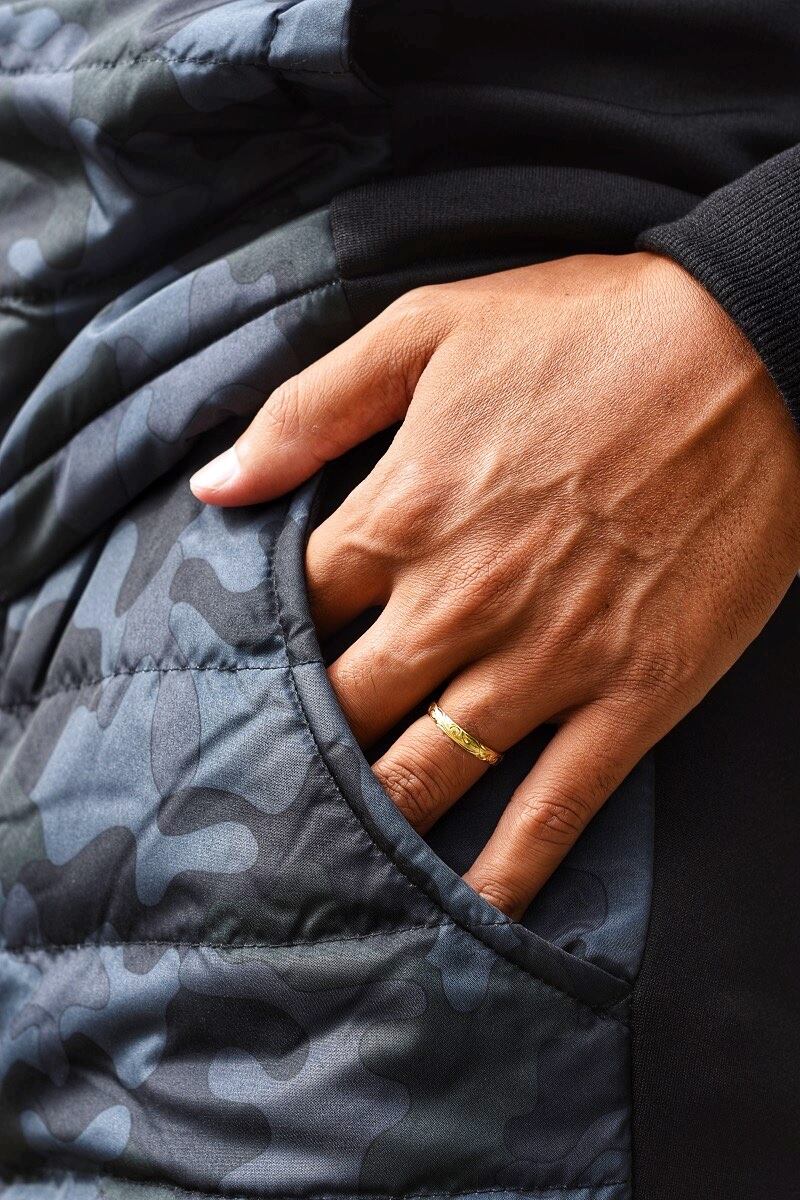 フロントにはダウン素材を使用して、キルティング加工で動きを付けます。