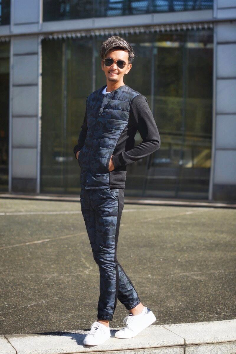 セットアップでの着用は統一感が出てグッとスタイルが引き締まります。